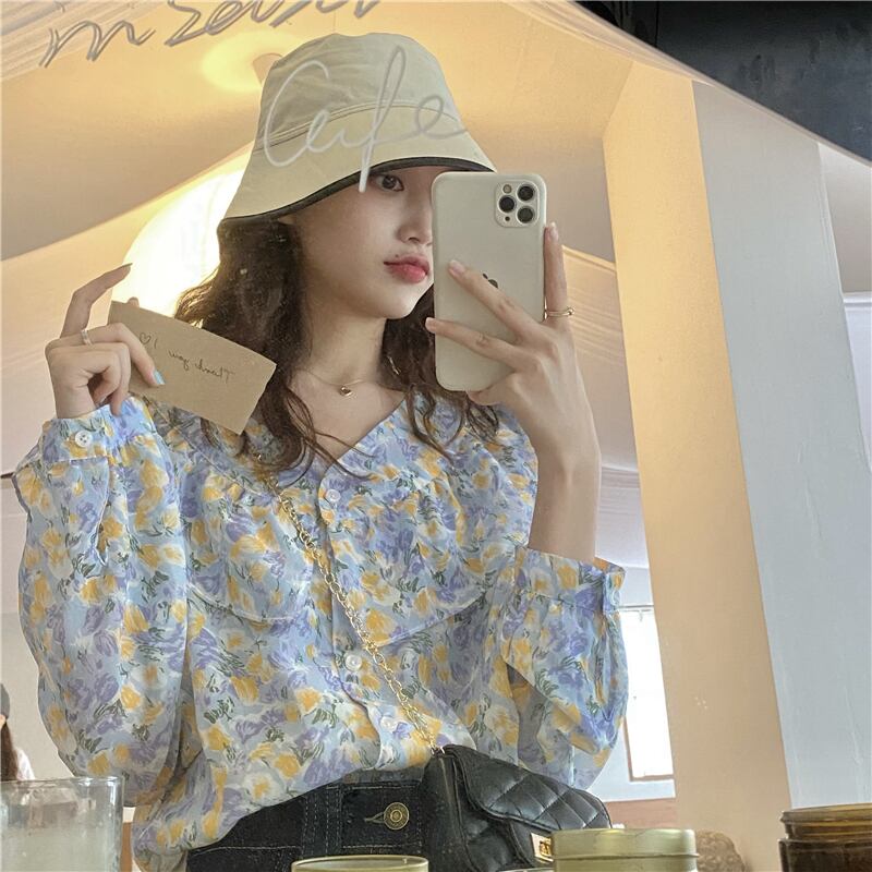 フローラルシフォンシャツ レディース夏服韓国ファッションスタイルトップス ロング 大人ガーリー スウィート キュート カジュアル 夏物 花柄 長袖 DOLL46759744656 | pleglad Dorothy