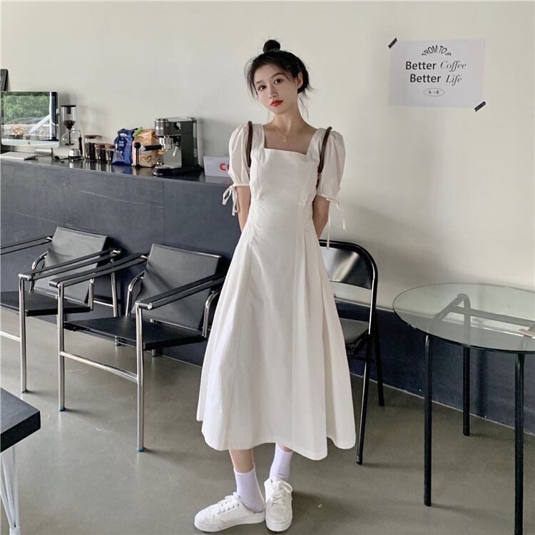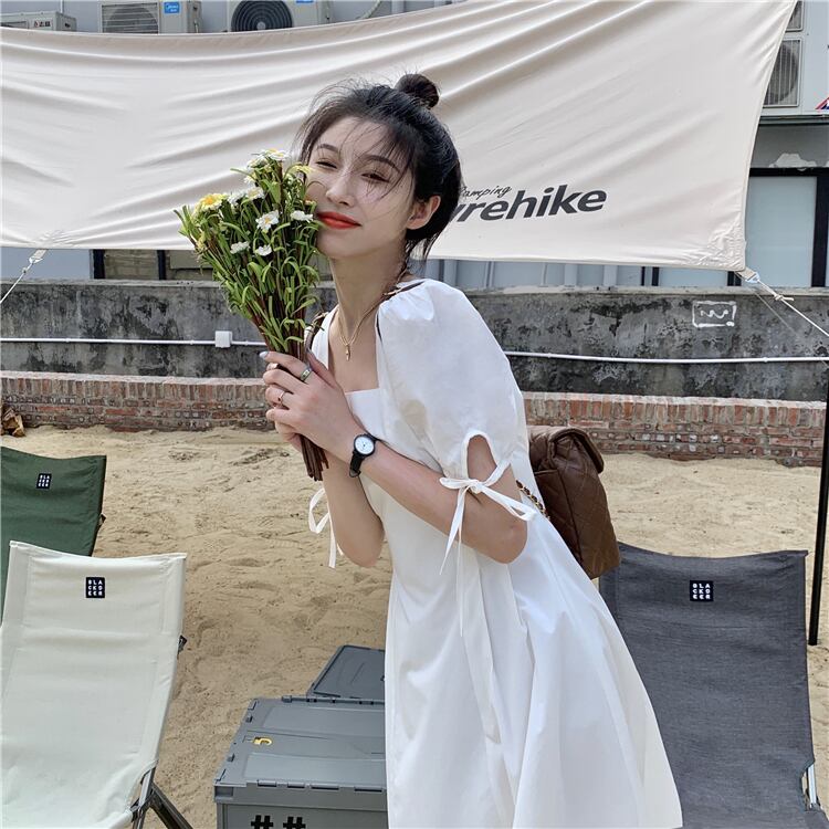 ホワイトスリーブワンピース夏服スカート カラーロング 大人ガーリー スウィート キュート カジュアル 夏物 フラワーデザイン スクウェア DOLL59358228764 | pleglad Dorothy