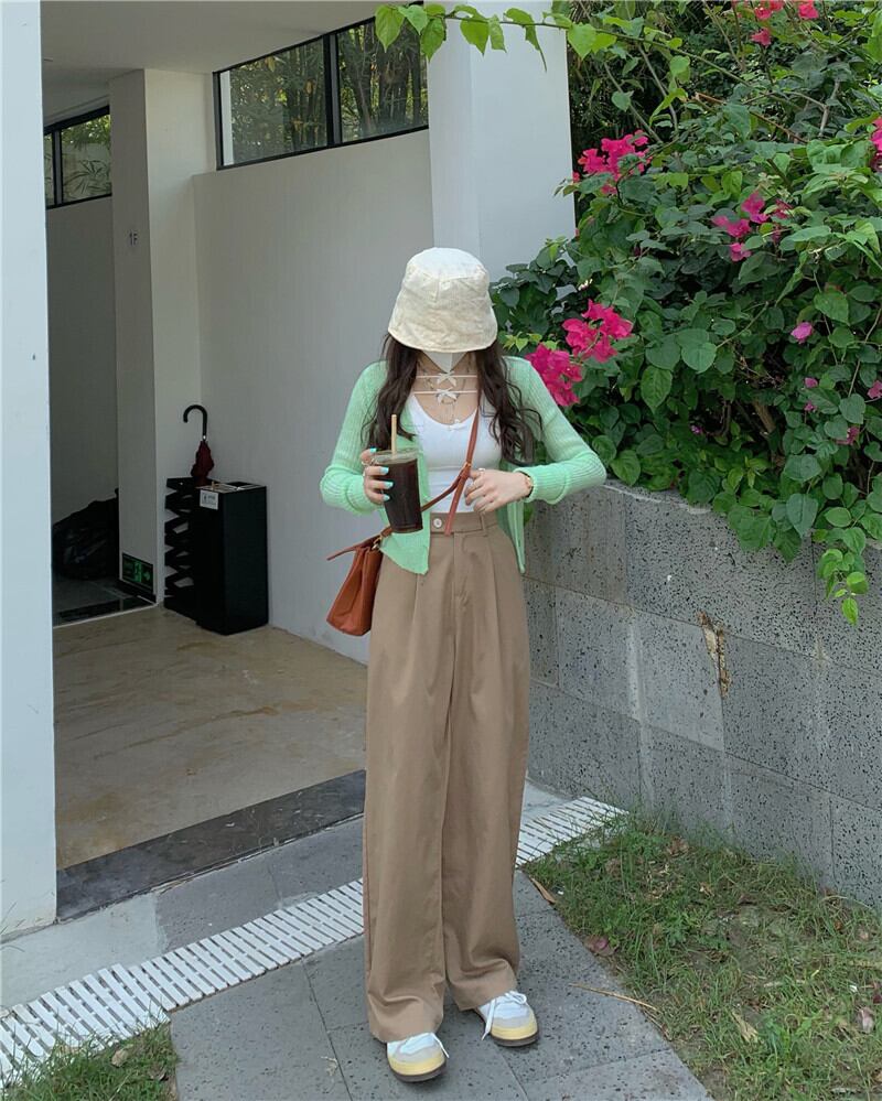 色:ベスト,カーディガンセーター,カーキ色のズボン