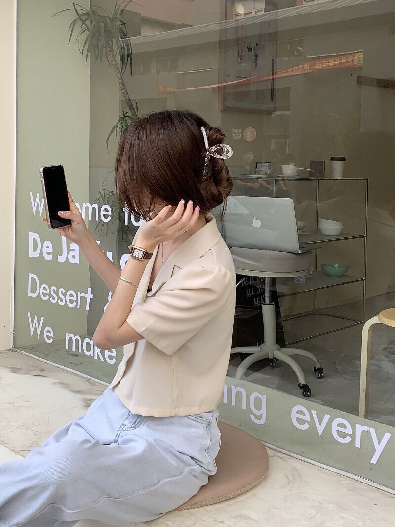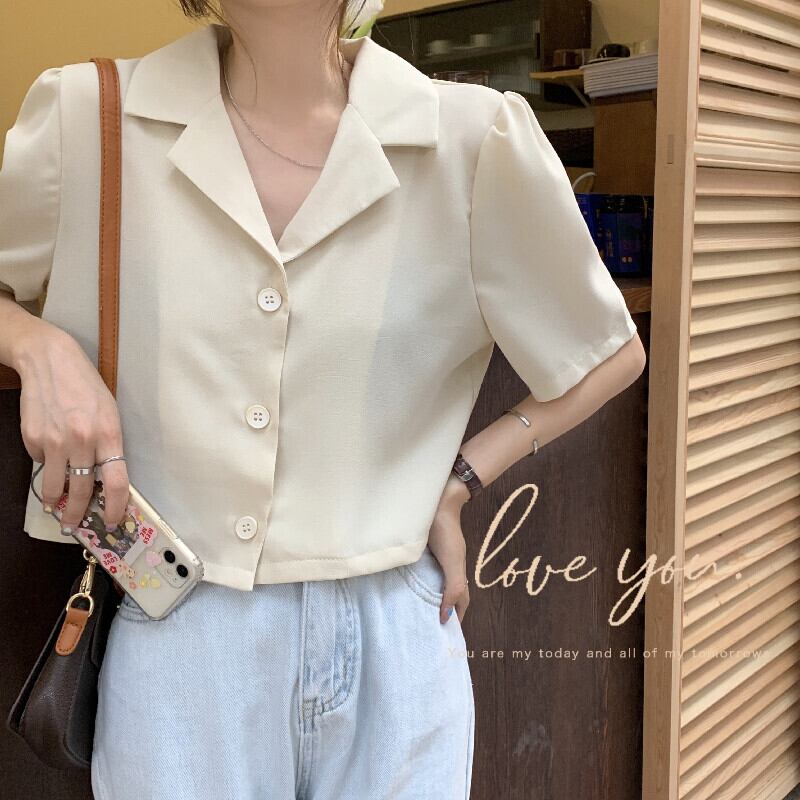 カラーシャツ レディース夏服スタンダードショートトップス レトロ 夏物 DOLL48059863802
