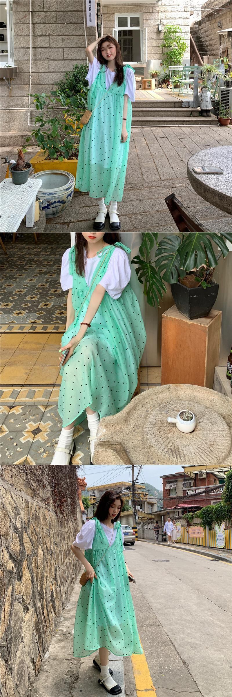 色:白いTシャツのスカート,グリーンタンクスカート,赤いベストスカート
