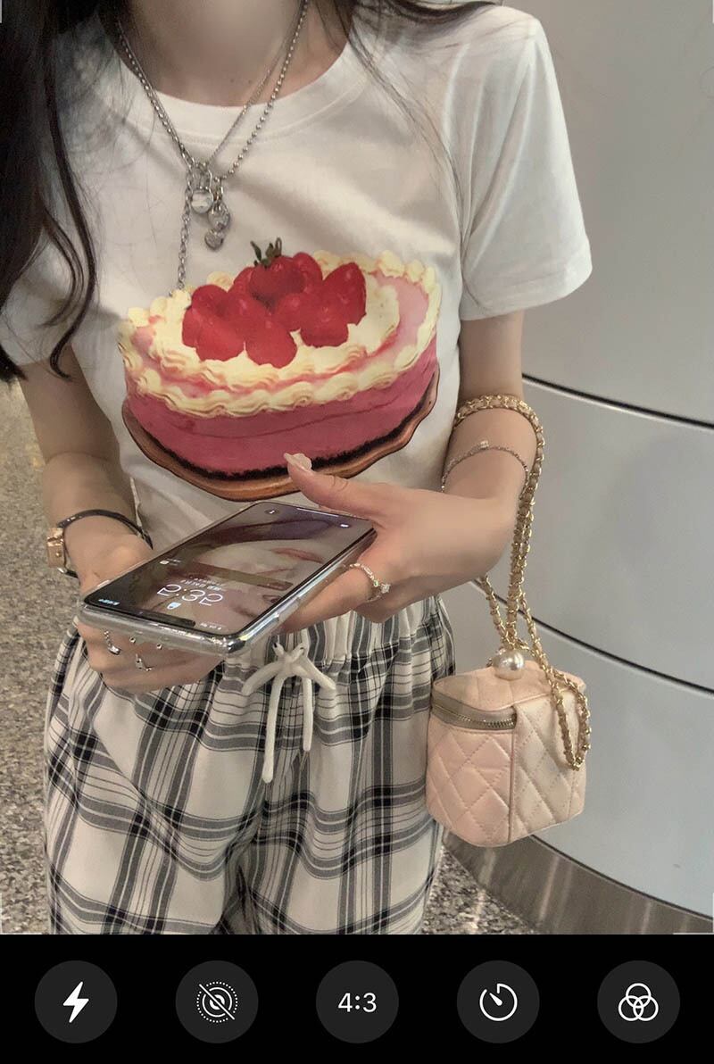色:ケーキT,チェック柄パンツ
