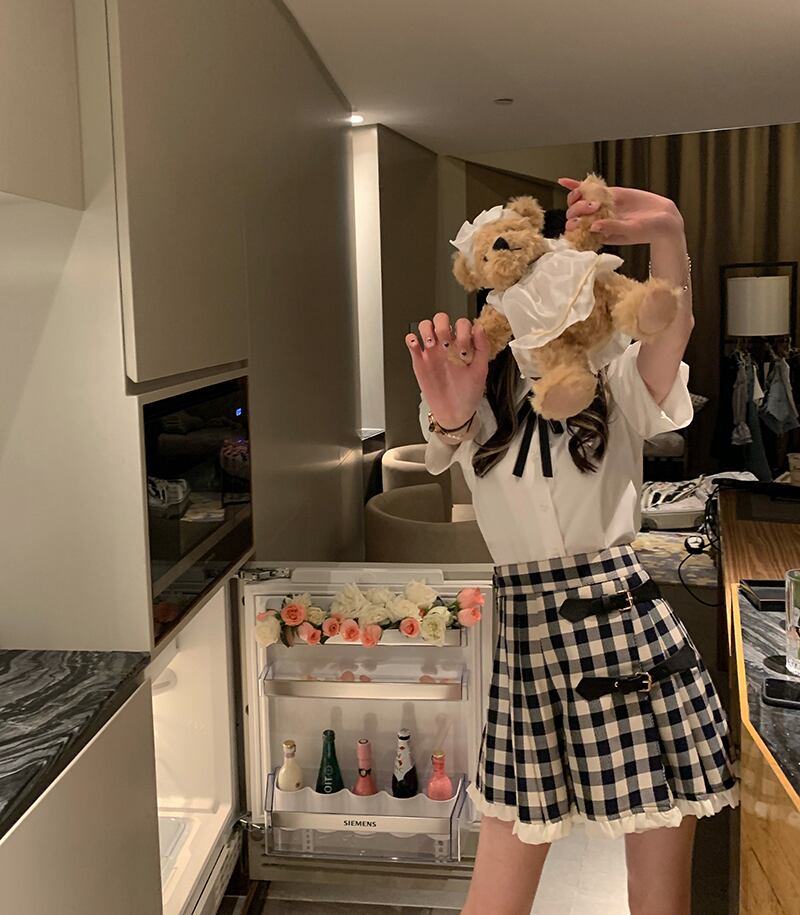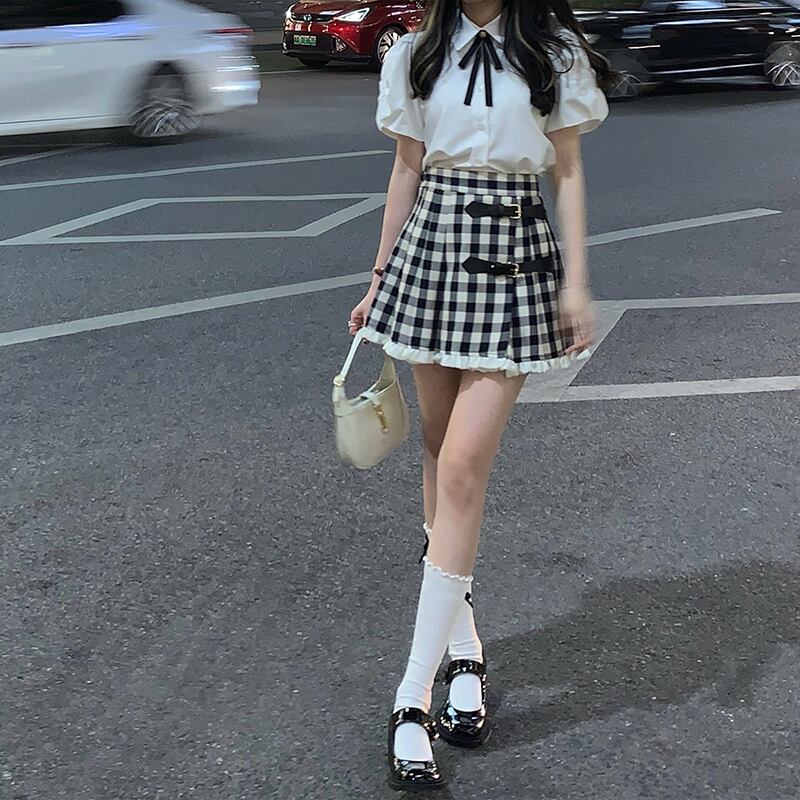色:シャツ(蝶ネクタイ付き),チェック柄スカート
