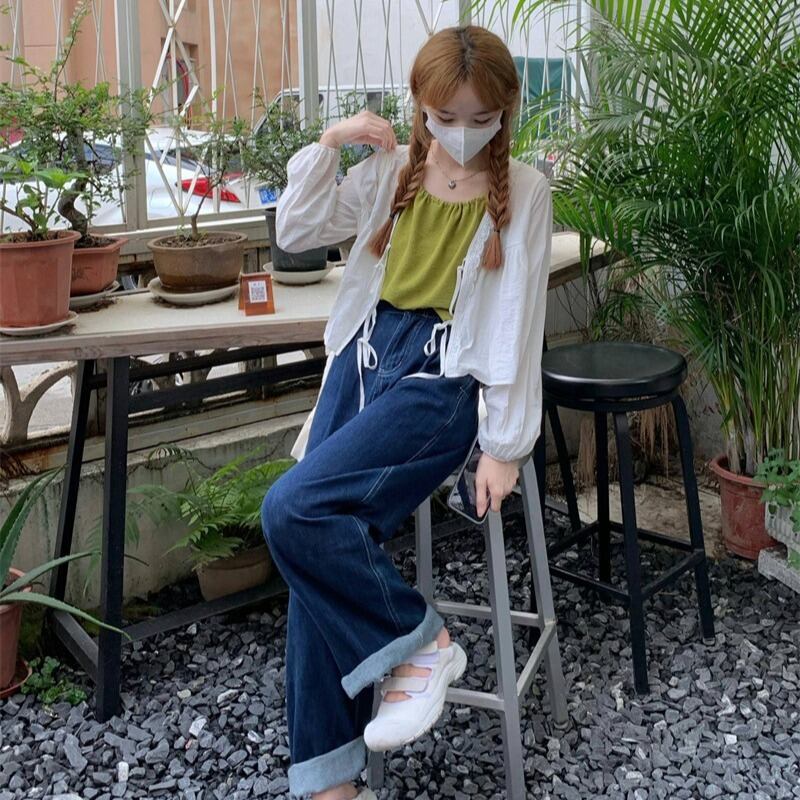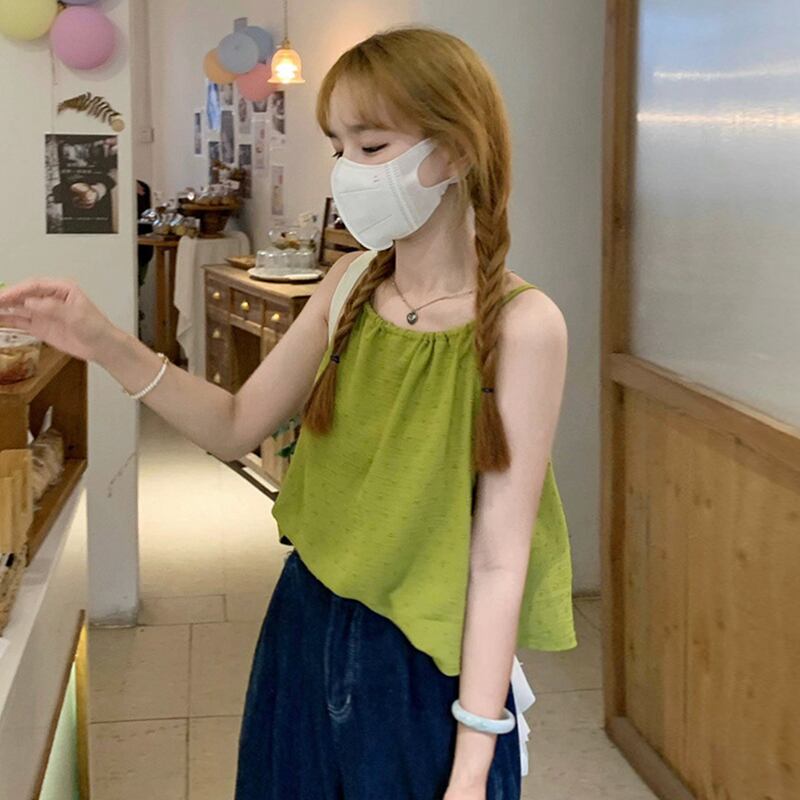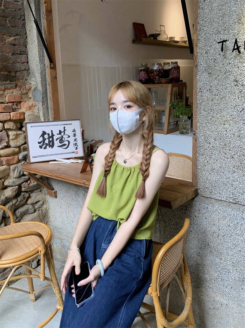色:グリーンスリング,白いカーディガン