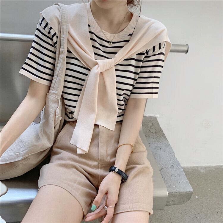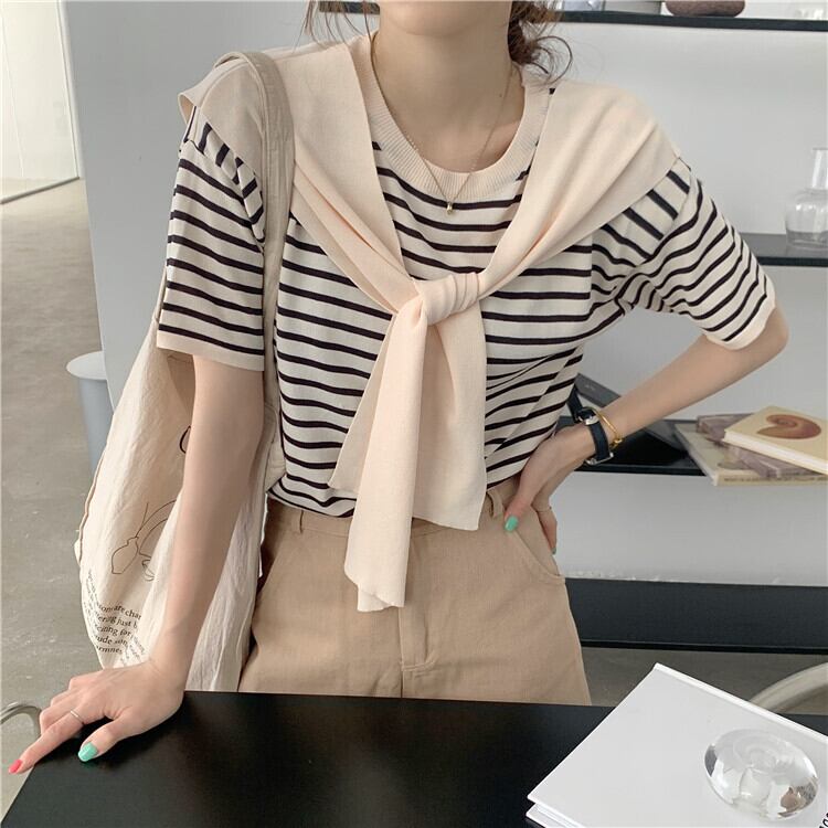 ネイビーカラーストライプセーター レディース夏服韓国ファッションルーズトップス 夏物 スタイル DOLL57302539082