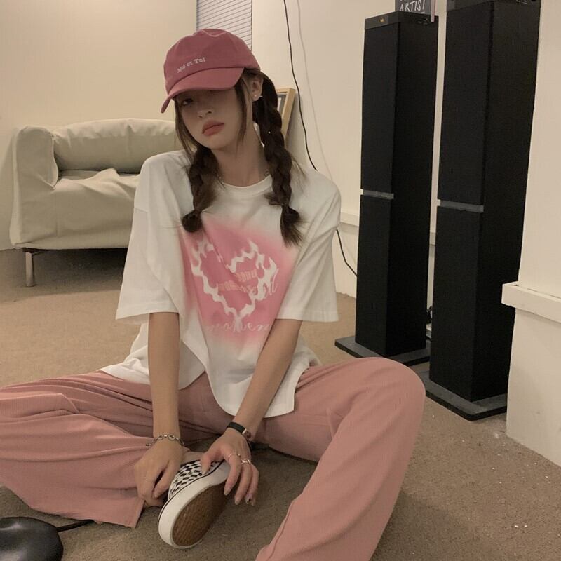 色:白いTシャツ,黒いズボン,ピンクのパンツ