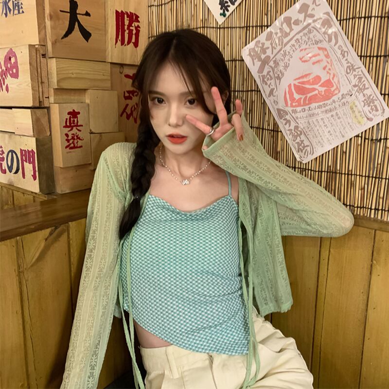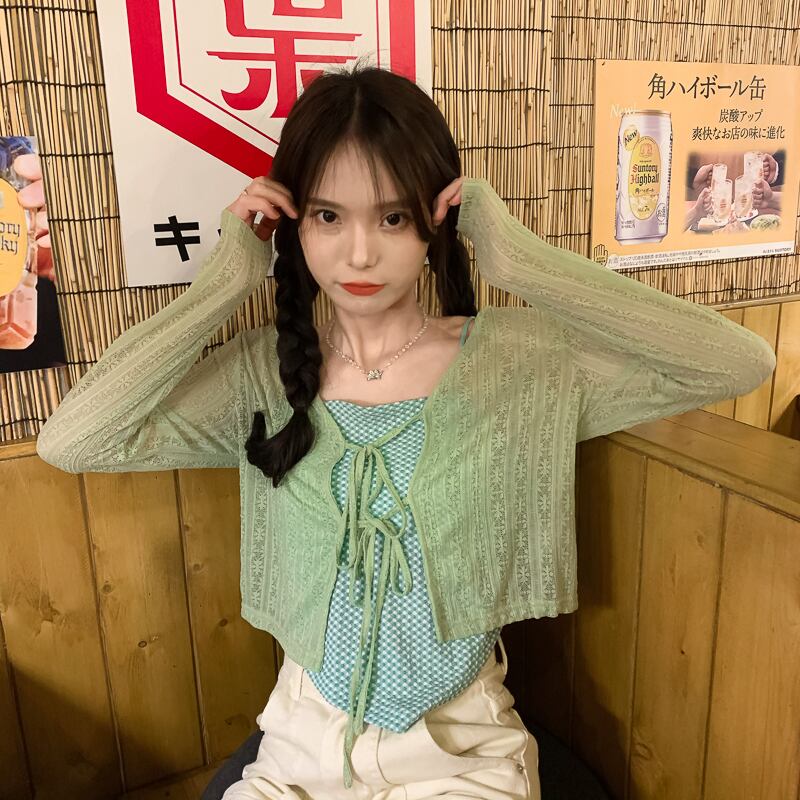 色:白いカーディガン,薄緑のカーディガン,ブラックサスペンダー,グリーンスリング
