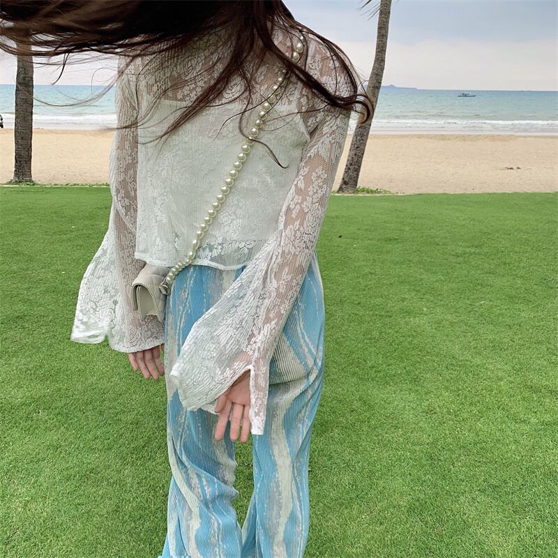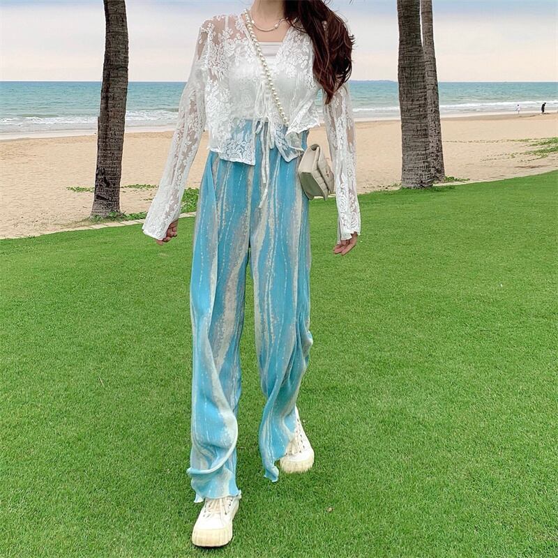 色:カーディガン日焼け止め服,小さなスリング,ワイドレッグパンツ