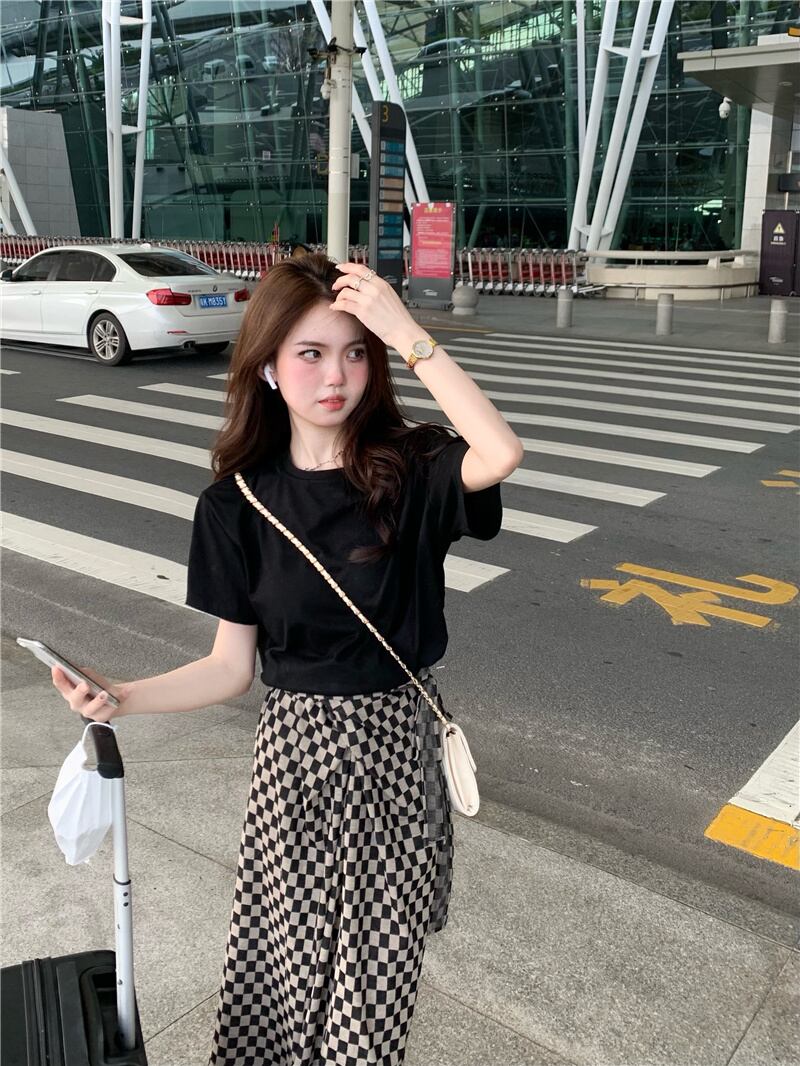 色:レター印刷T,チェック柄スカート