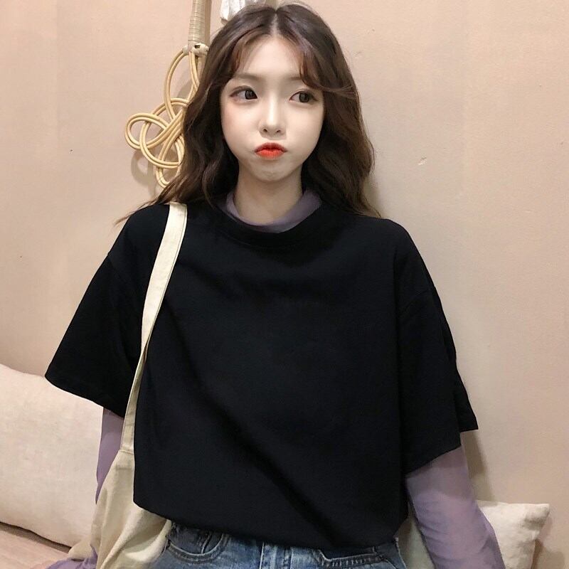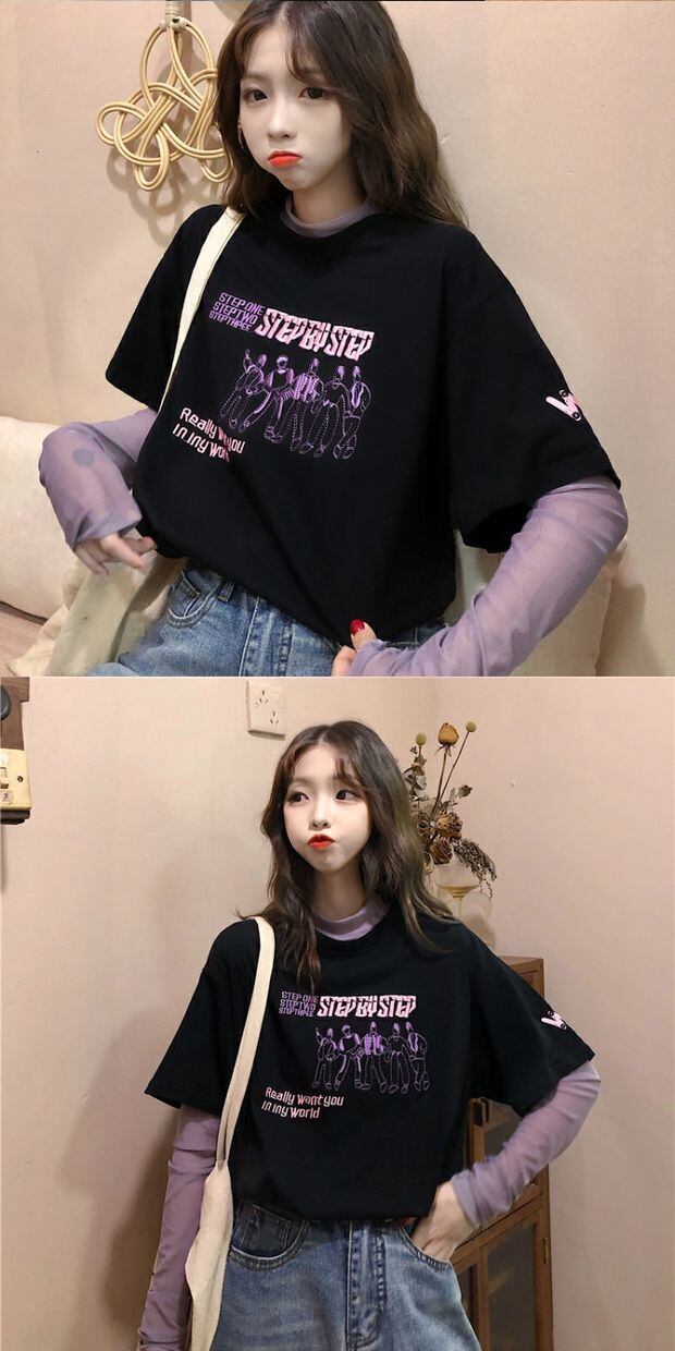 色:黒い半袖,パープルベース,黒の刺繍入り半袖