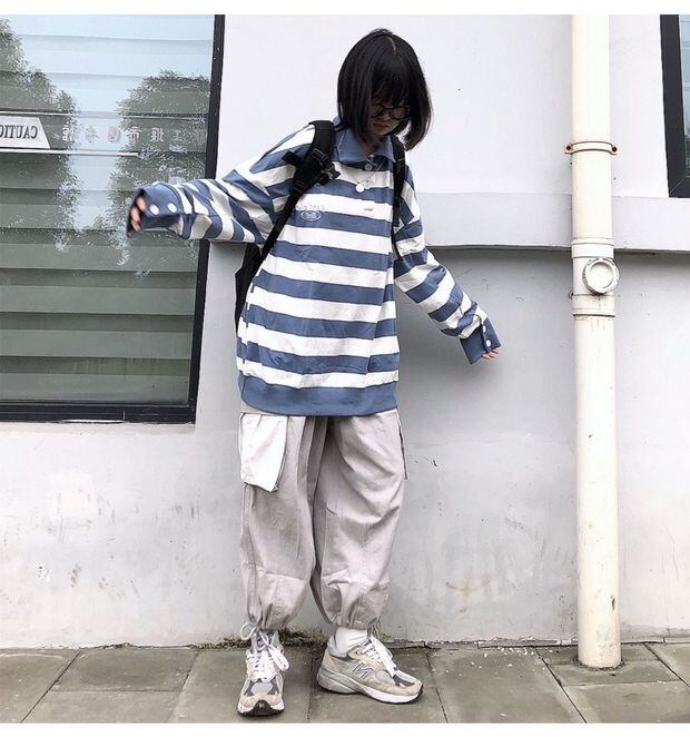 スプリング秋物Tシャツトップス ヴィンテージブルーホワイトストライプシャツカジュアルルーズ薄手メンズレディーストレンド ロング 春物 オータム ビンテージ 長袖 first17955023389 | pleglad Dorothy