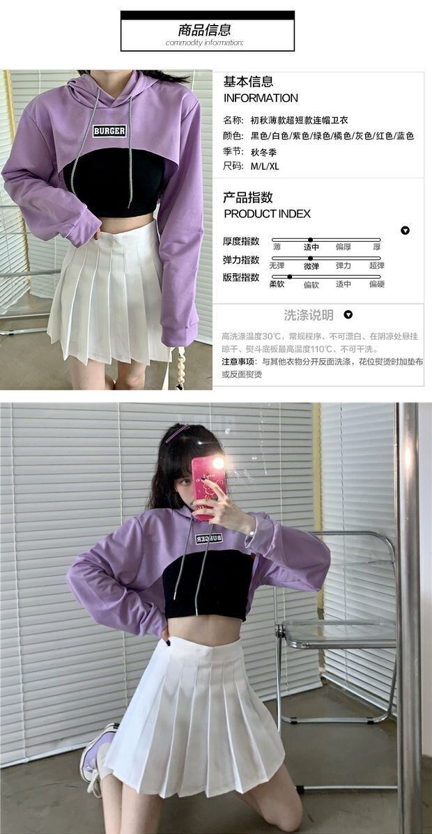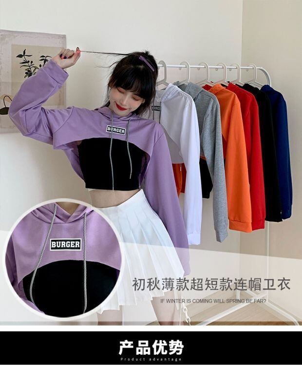 色:白い,黒,オレンジ,グレー,蛍光グリーン,赤,紫の,青,ins初秋の薄い超短フードセーター女性