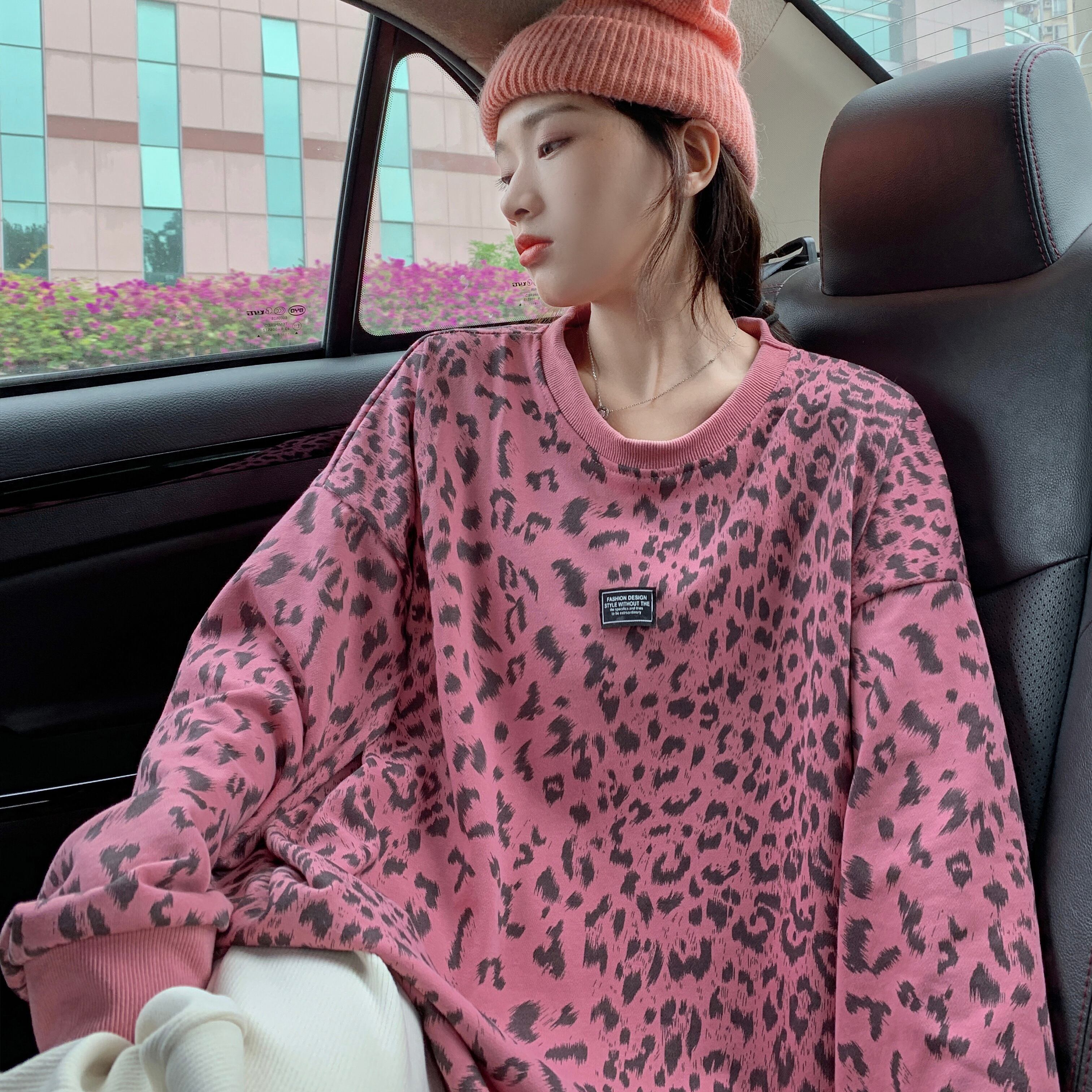 厚みレオパードプリント柄セーター レディース秋物ウィンタールーズオーバーサイズトップス トレンド ロング ピンク オータム 冬物 ボーイズ 長袖 first55342179793 | pleglad Dorothy
