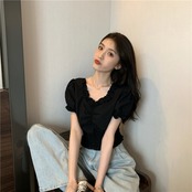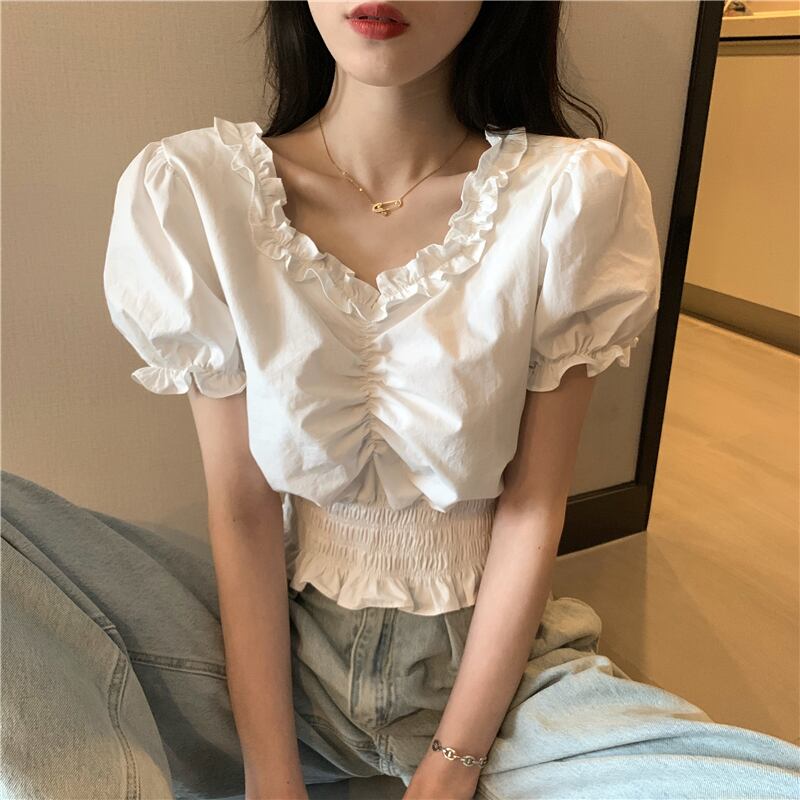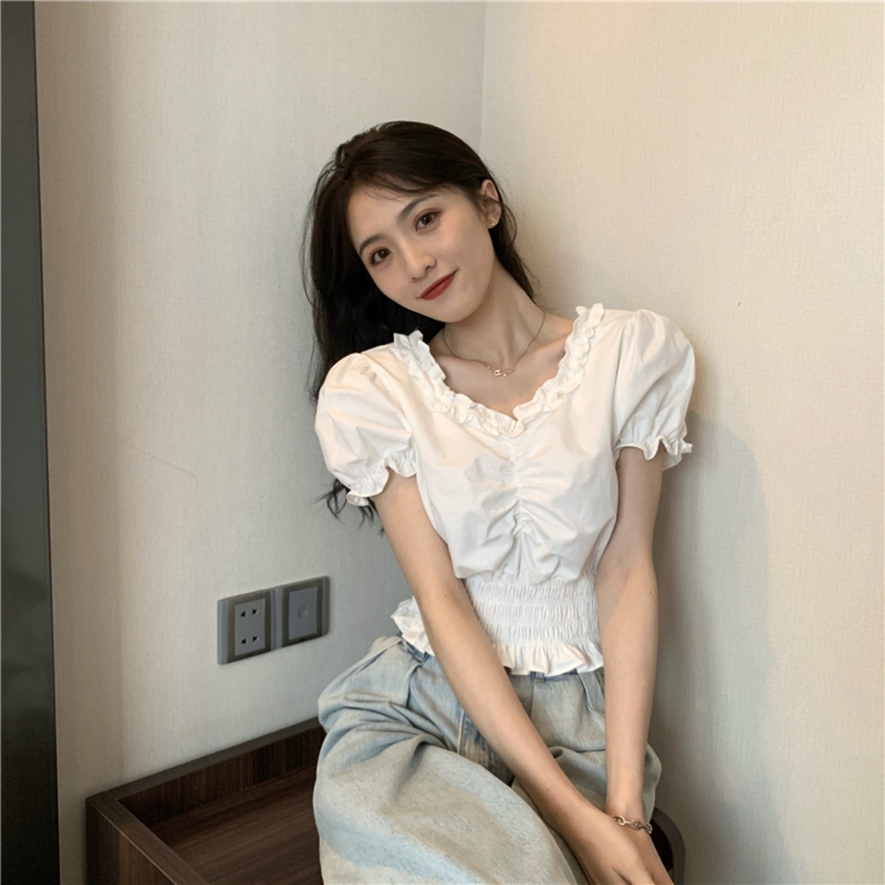 スリーブトップス ハイウェストウェストショートシャツ 夏服半袖 ハーフスリーブ 大人ガーリー スウィート キュート カジュアル 夏物 ウエスト DOLL92607441850 | pleglad Dorothy