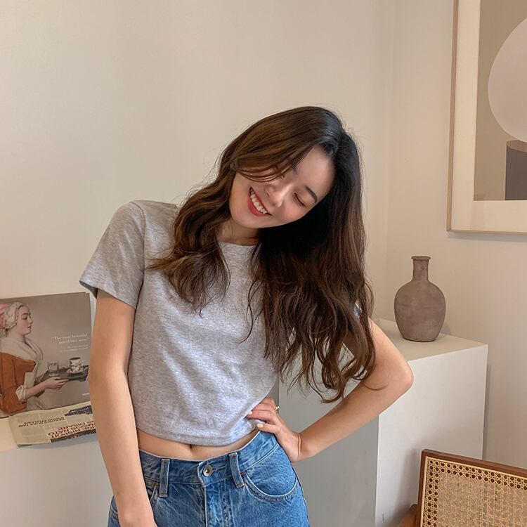 夏服ベーシックショートクロップトップ トップス 韓国ファッションスタイルソリッド カラーTシャツレディースNEW 夏物 ソリッドカラー DOLL5733133620 | pleglad Dorothy