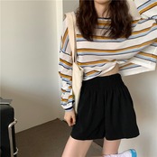 色:ホワイトショーツ,黒のショートパンツ,ブルーショートパンツ,緑のストライプのシャツ,ブラウンのストライプシャツ,ブルーストライプシャツ