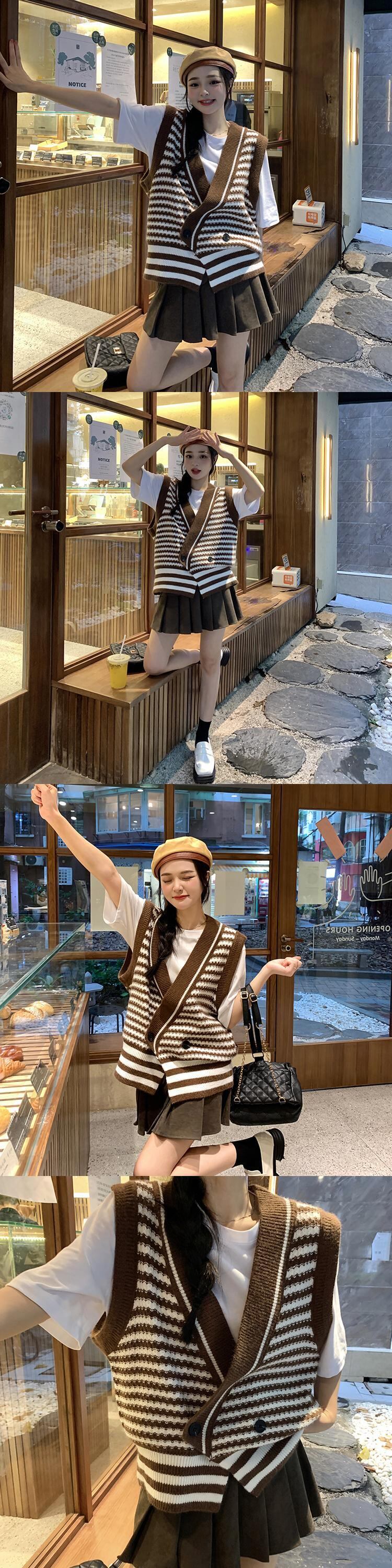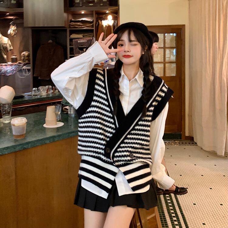 色:グリーンベスト,黒のベスト,コーヒーベスト,白のシャツ