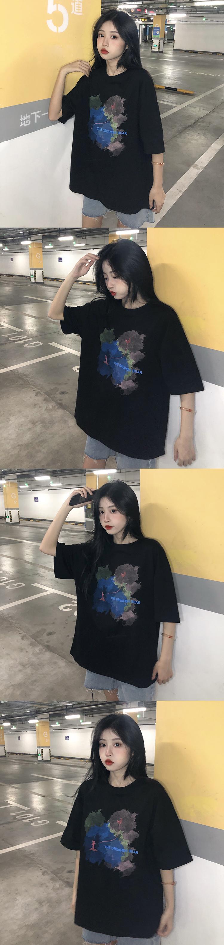 色:白い水彩落書きクマTシャツ,黒の水彩落書きクマTシャツ
