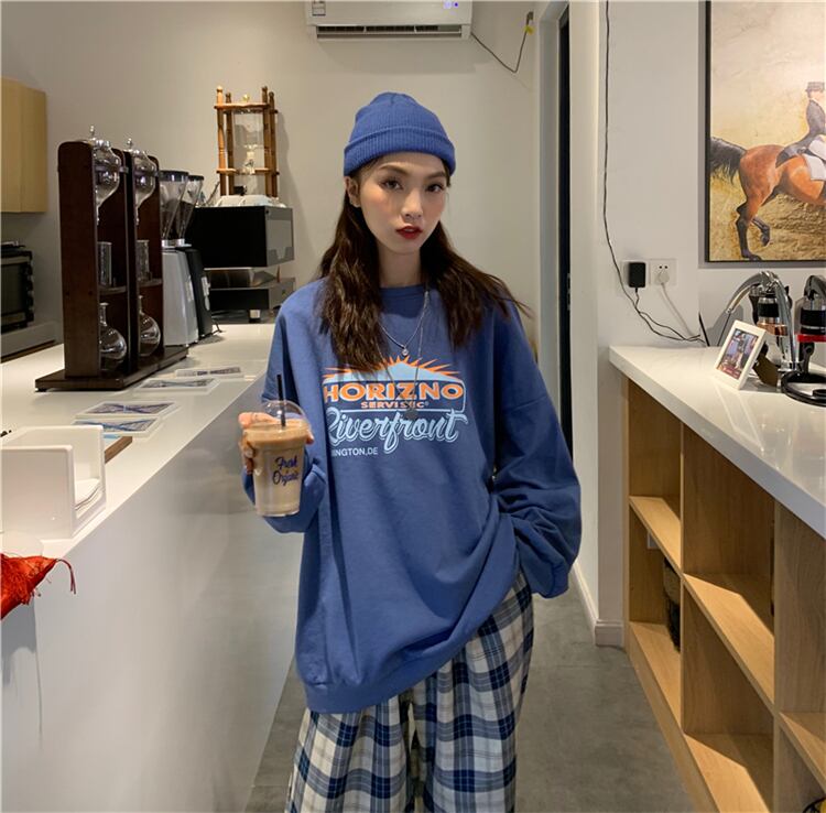 色:青いセーター,白灰色のセーター,格子縞のズボン