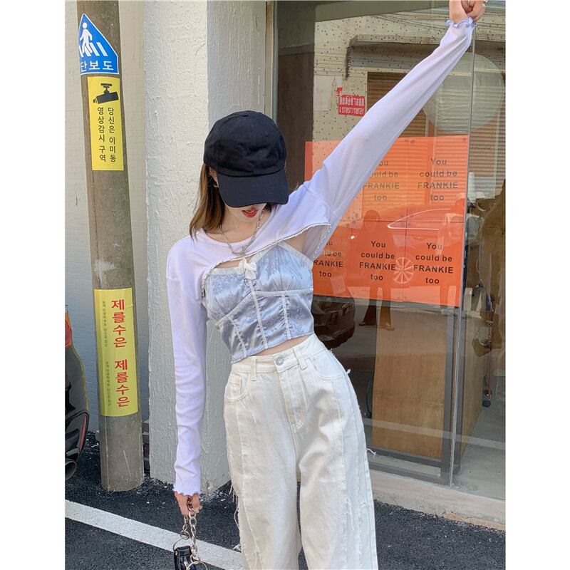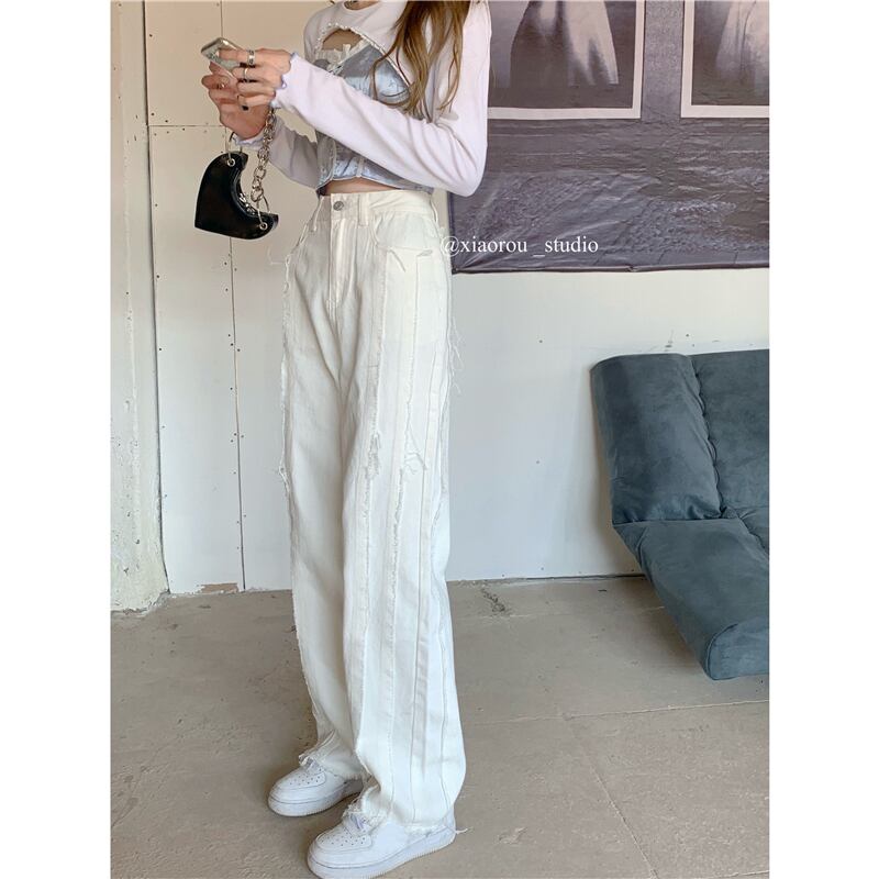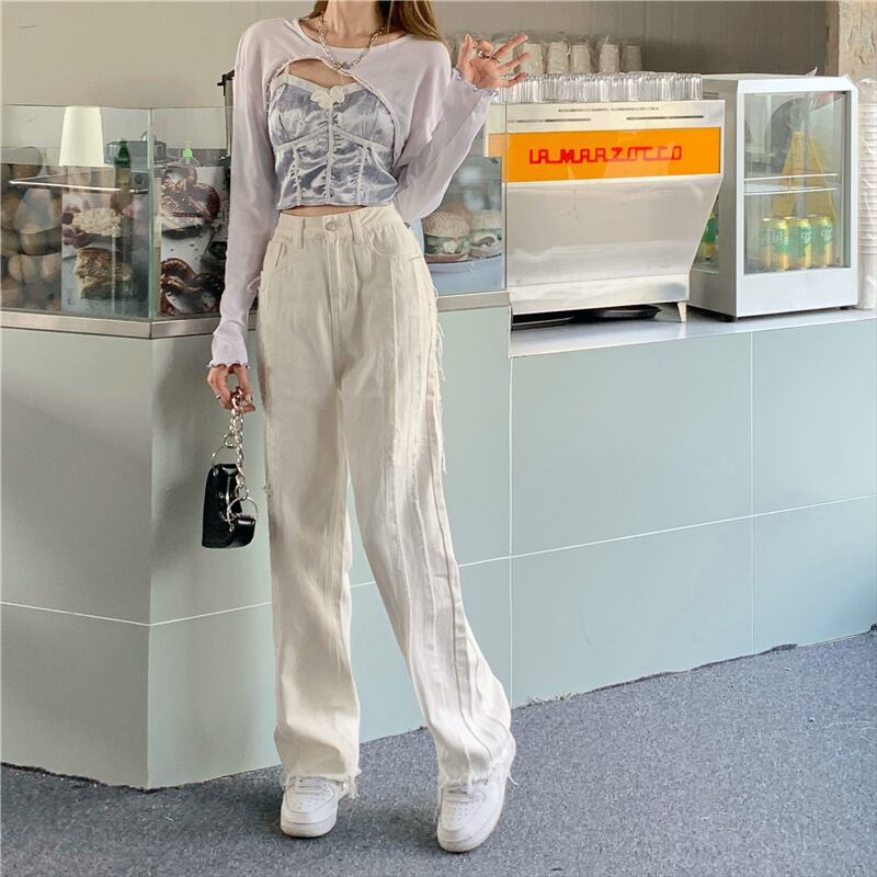 色:白いブラウス,青いスリング,ホワイトジーンズ