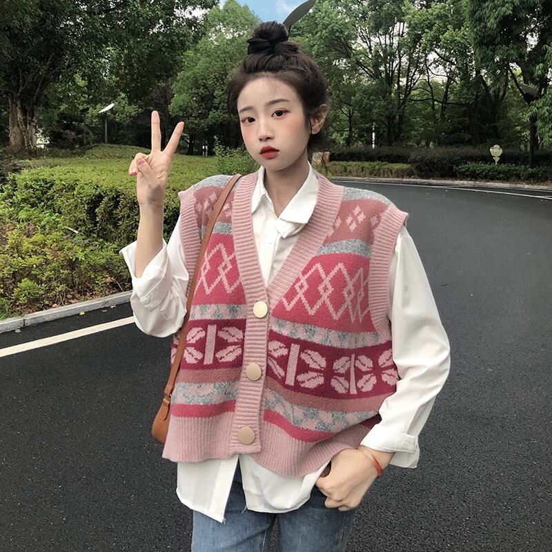 色:ピンクヒットカラーベスト,白のシャツ