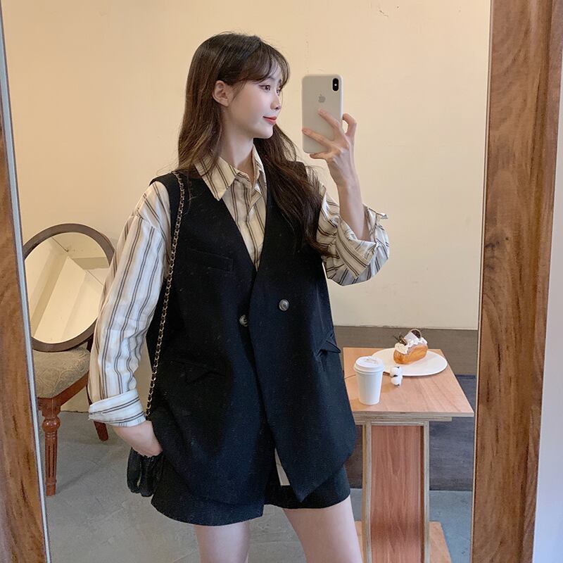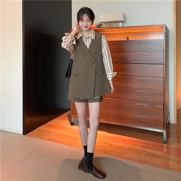 色:コーヒーシャツ,グレーのシャツ,コーヒーベスト,黒のベスト