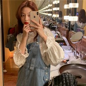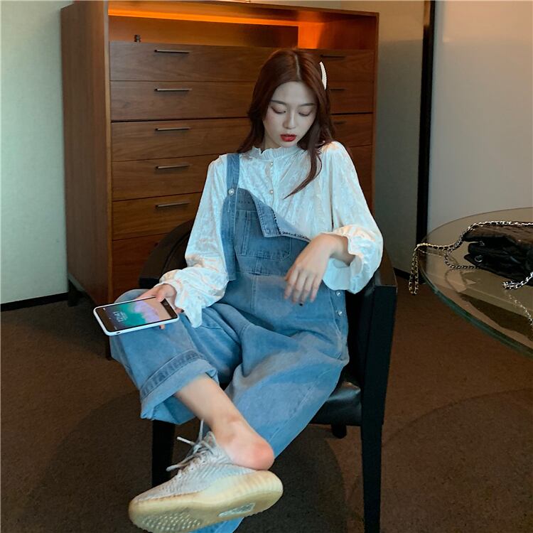 色:白のシャツ,青いオーバーオール