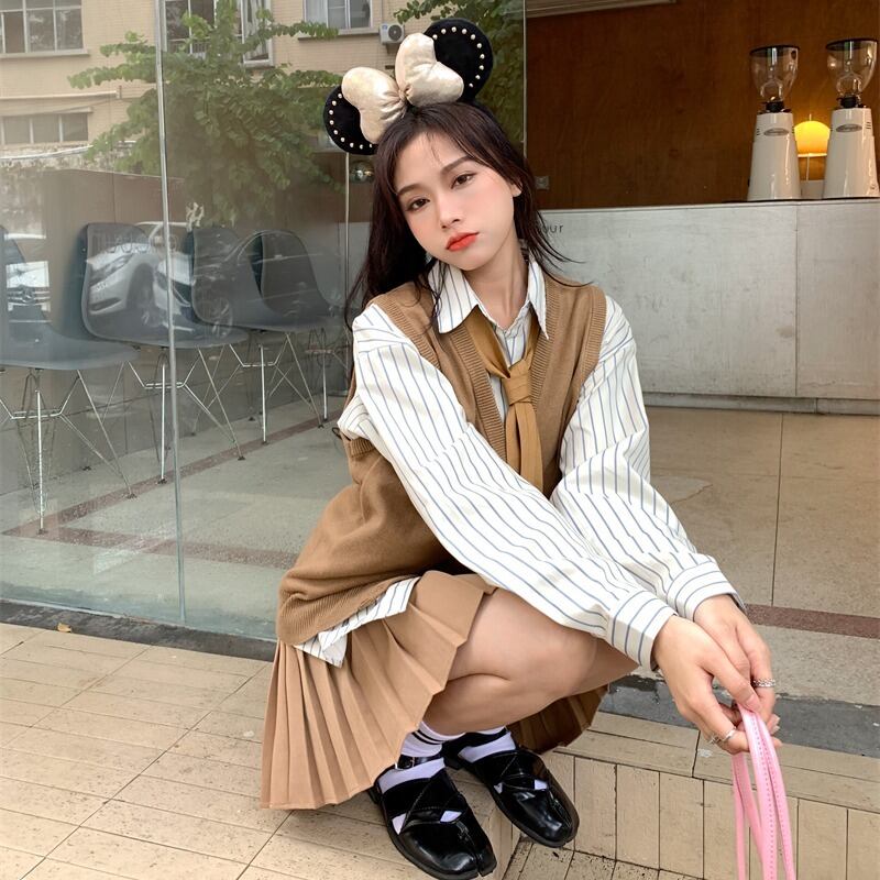 色:ストライプシャツ,ネクタイ,ニットベスト,プリーツスカート
