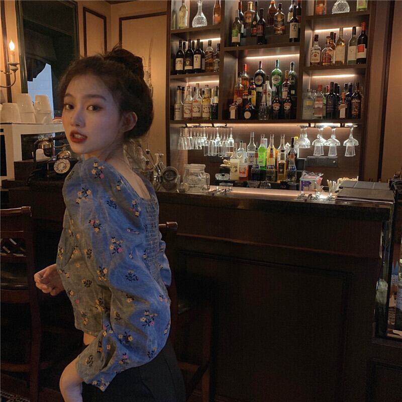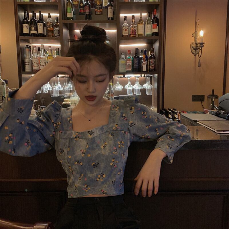 カラーショートトップス レディーススプリング秋物スタンダードスタイルパフスリーブスリーブフローラルシャツ レトロ 春物 オータム 花柄 スクウェア DOLL73847148670 | pleglad Dorothy