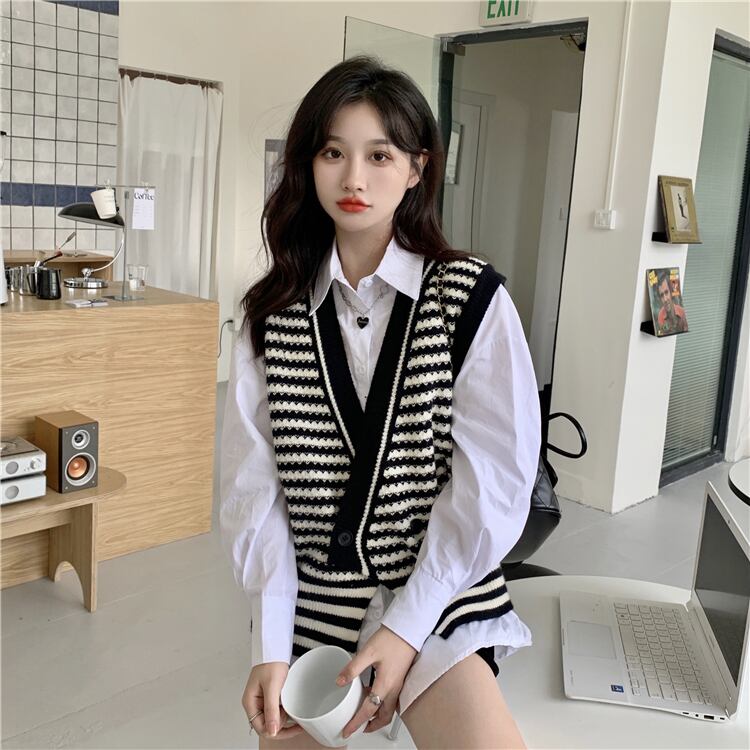 色:黒のベスト,コーヒーベスト,グリーンベスト,白のシャツ,ライトグリーンのシャツ,アプリコットシャツ