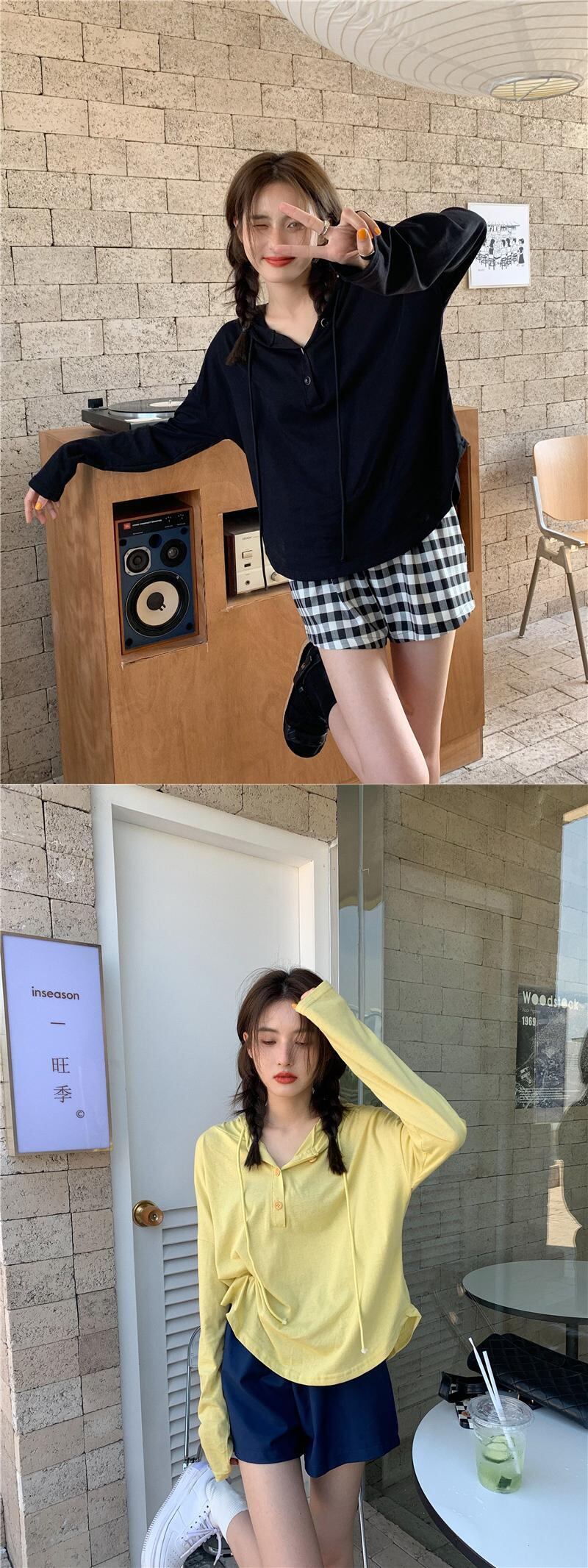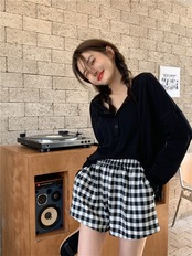 色:黒いTシャツ,黄色のtシャツ,グレーのTシャツ,黒いズボン,青パンツ,チェック柄パンツ