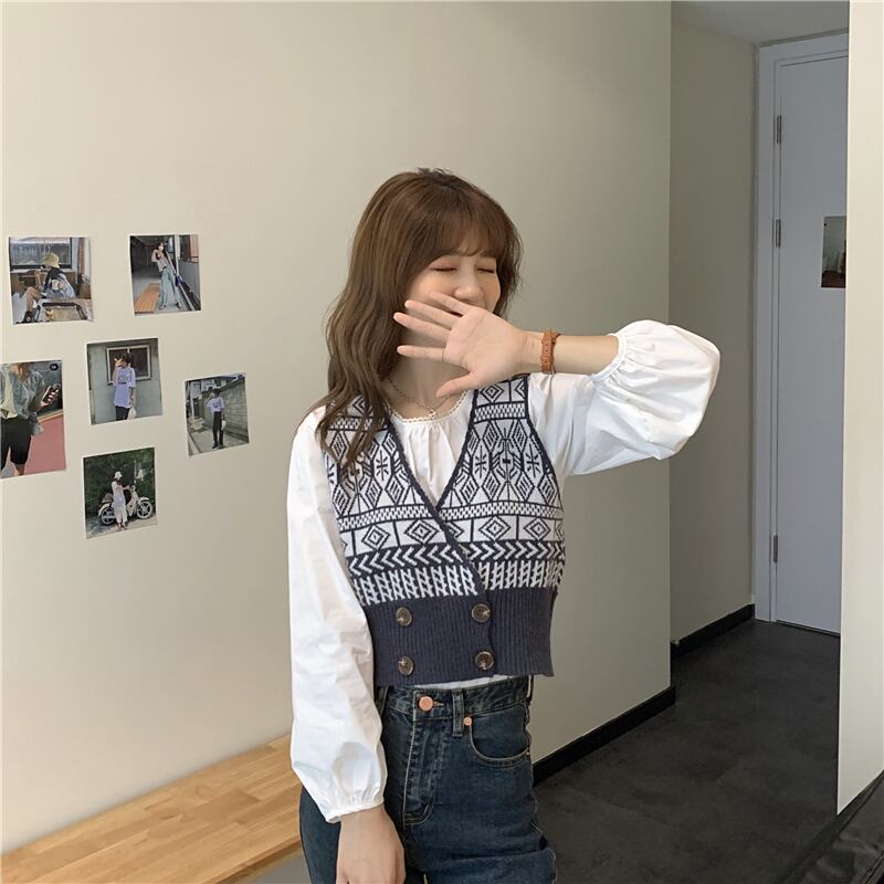 色:白いシャツのワンピース,ワンピースアプリコットシャツ,グレーベストシングルピース,コーヒーカラーベストワンピース
