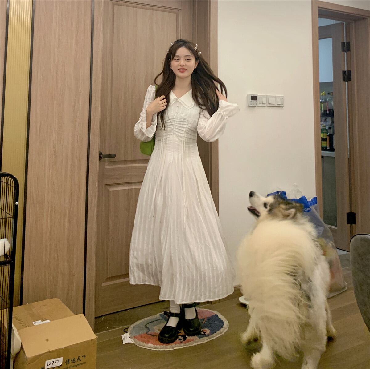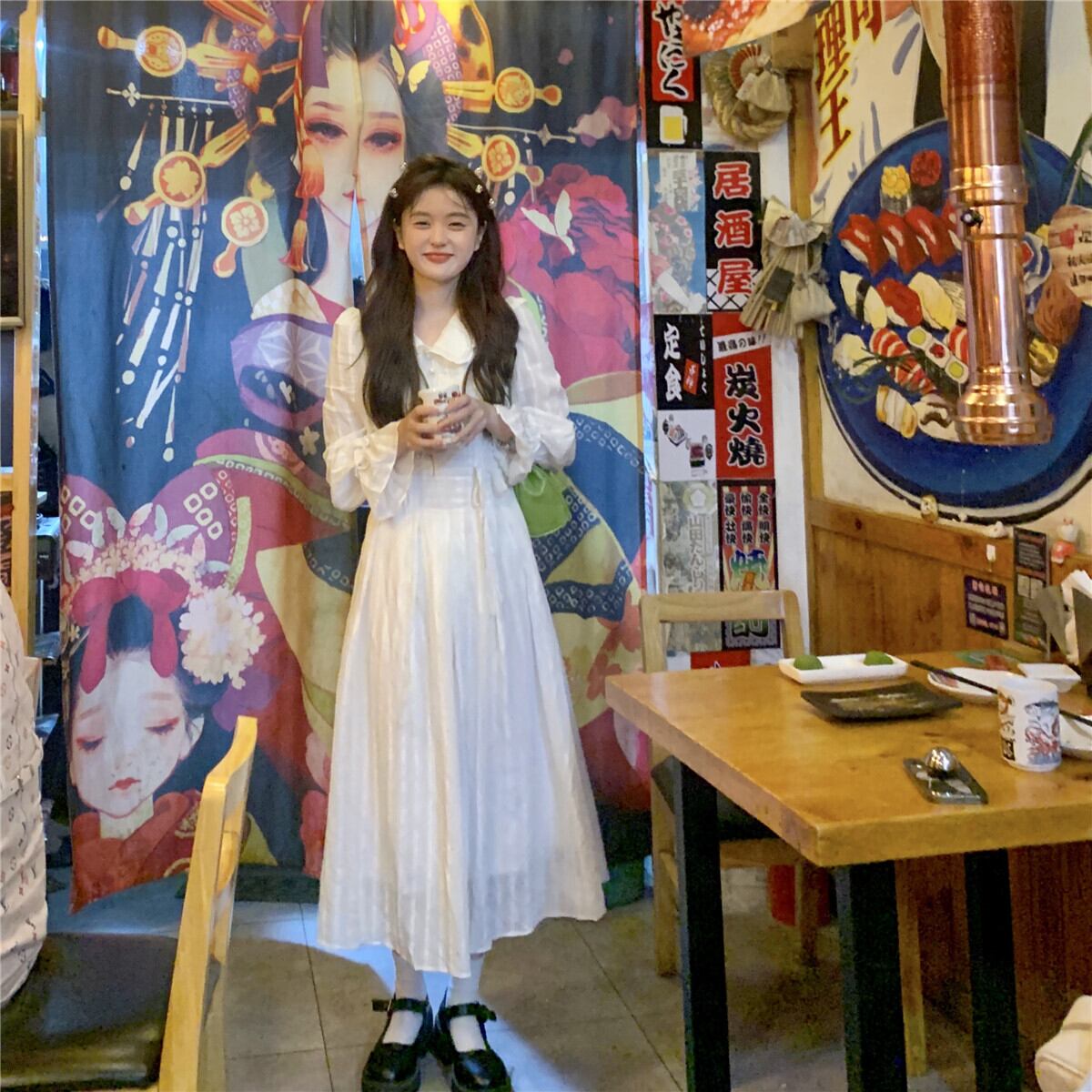 ホワイトロングワンピースレディーススプリング秋物スカート 春物 オータム 長袖 DOLL7561168599