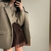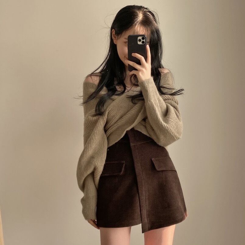 色:カーキ色のセーター,コーヒー色のスカート,黒いセーター,黒スカート