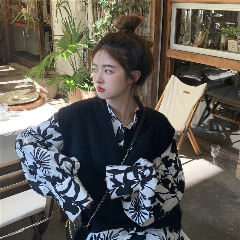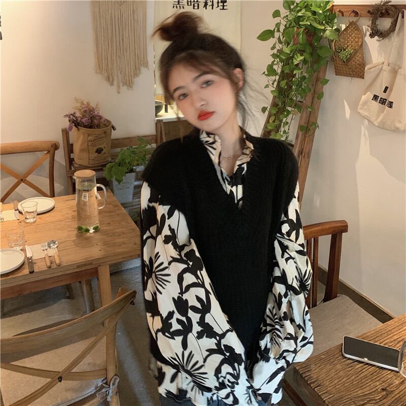 色:黒のベスト,ランタンスリーブシャツ