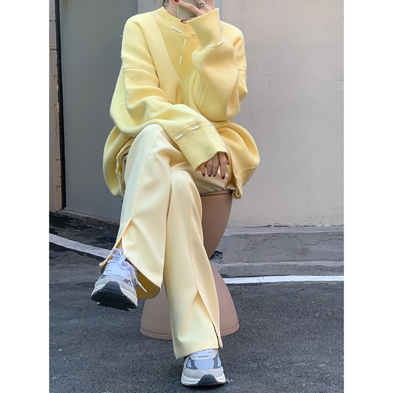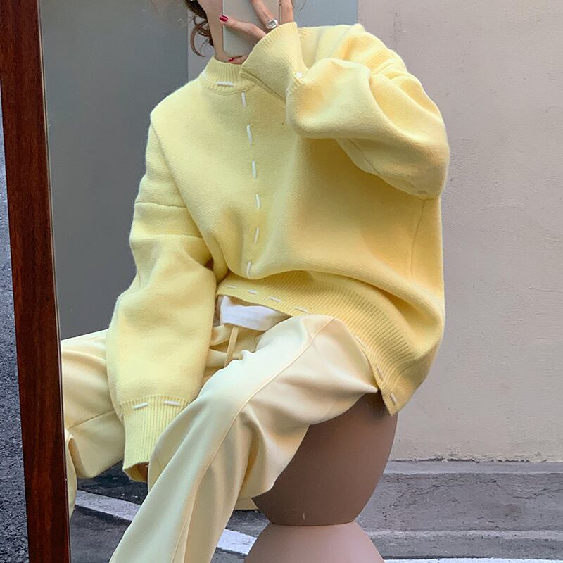 色:ドローストリングパンツイエロー,黄色い糸のセーター