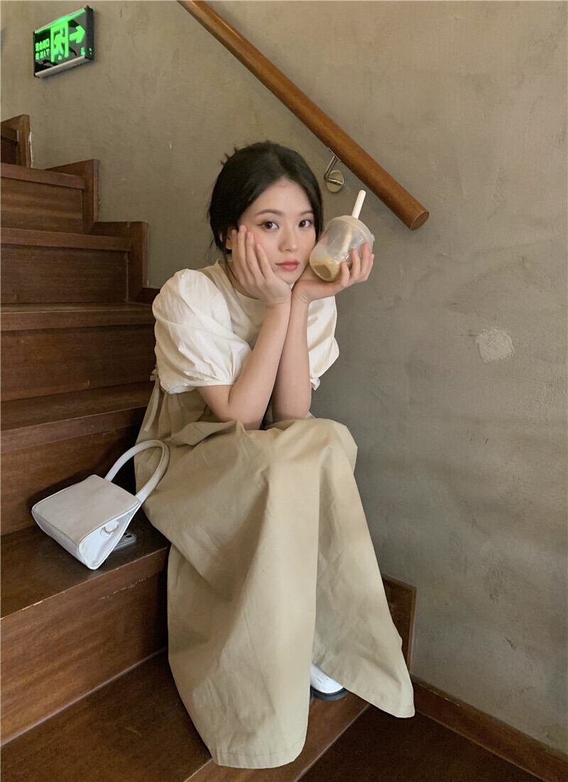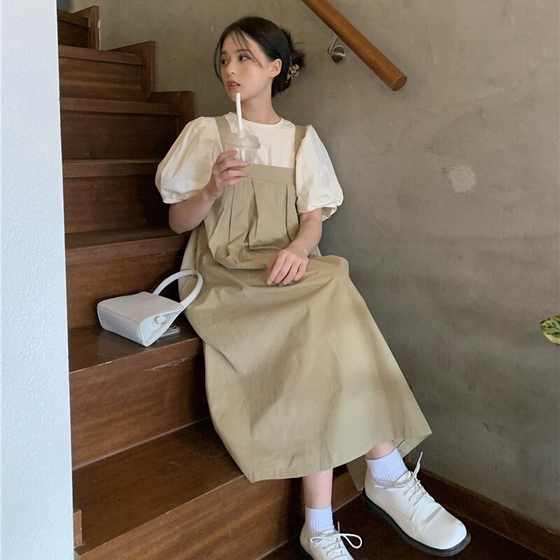 色:グレートップ,アプリコットトップ,白いストラップドレス,カーキストラップドレス