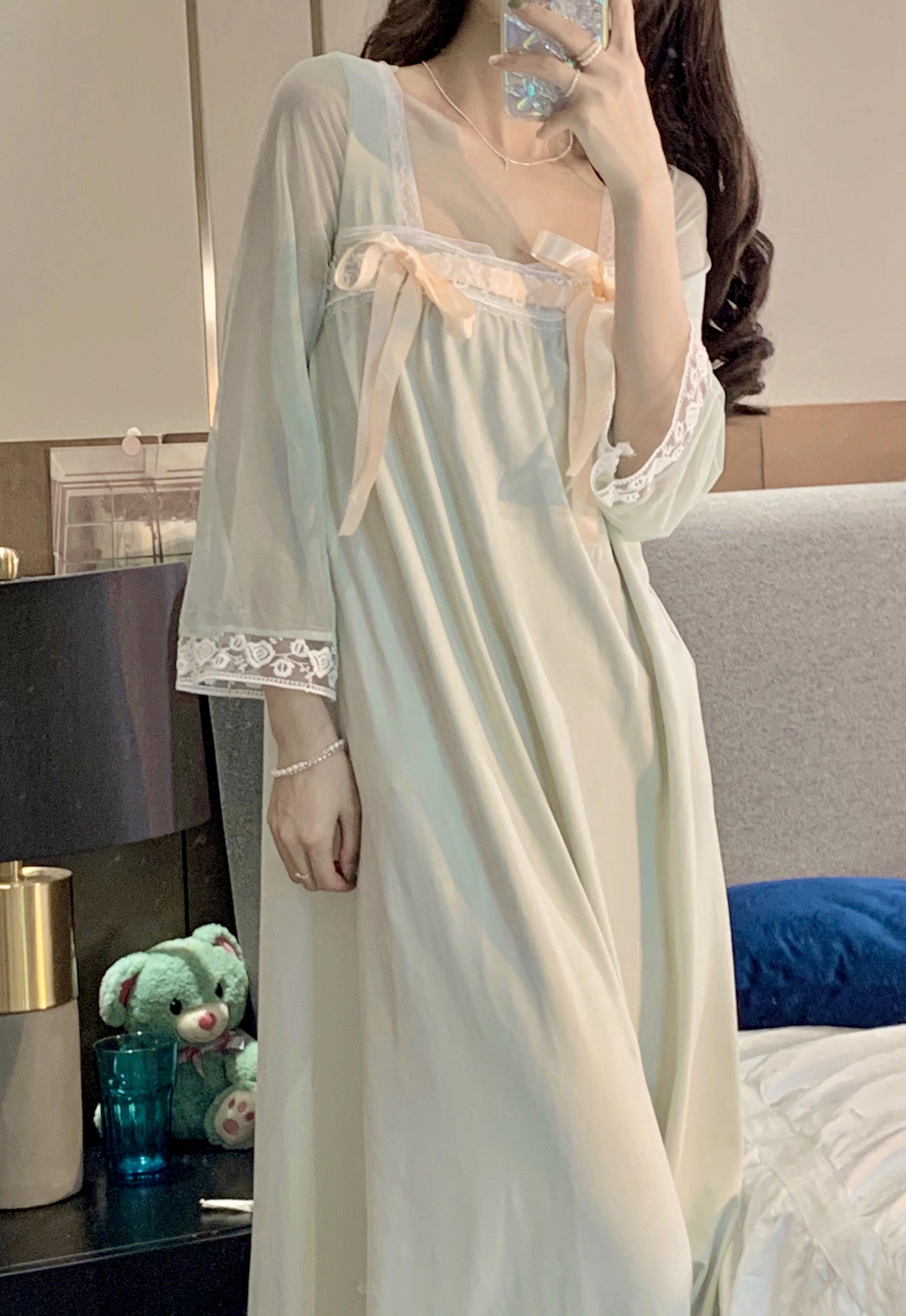 スタイルレディーススプリング秋物薄手パジャマ ルームウェア レース 大人ガーリー スウィート キュート カジュアル 春物 オータム シルク ワンピース DOLL91166473737 | pleglad Dorothy