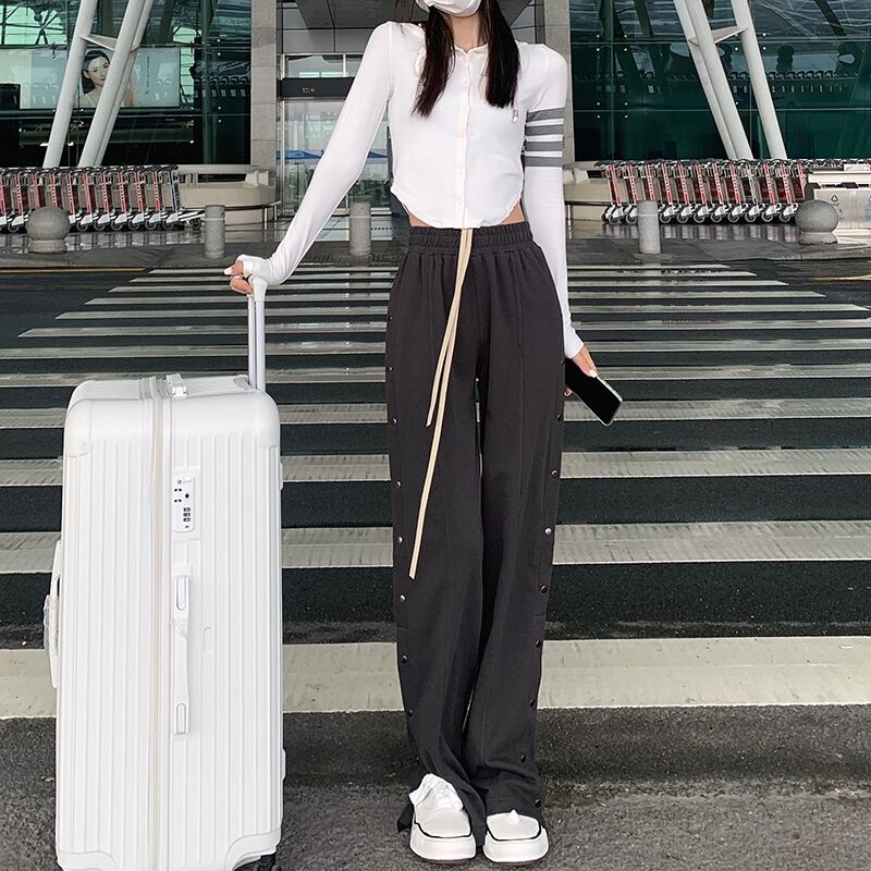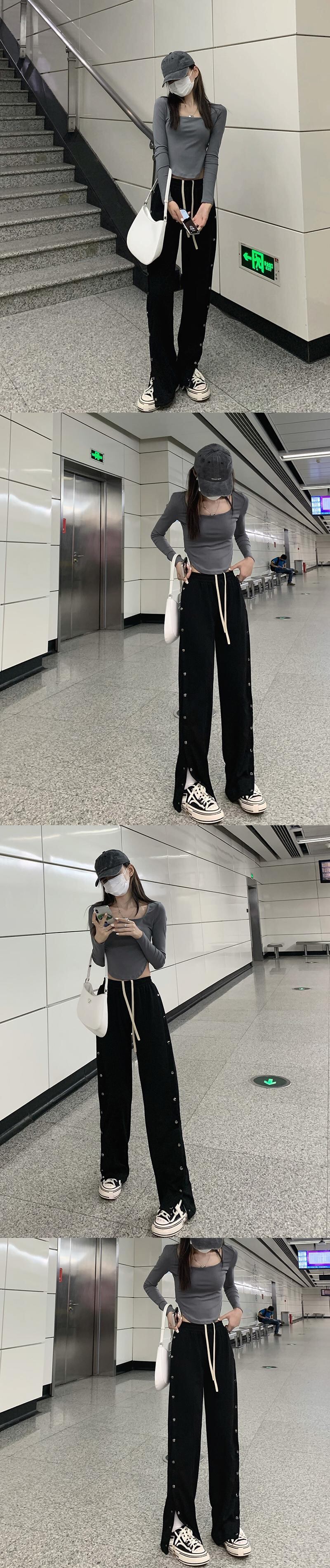 色:ダークグレーパンツ,黒いズボン,ホワイトトップ,グレートップ
