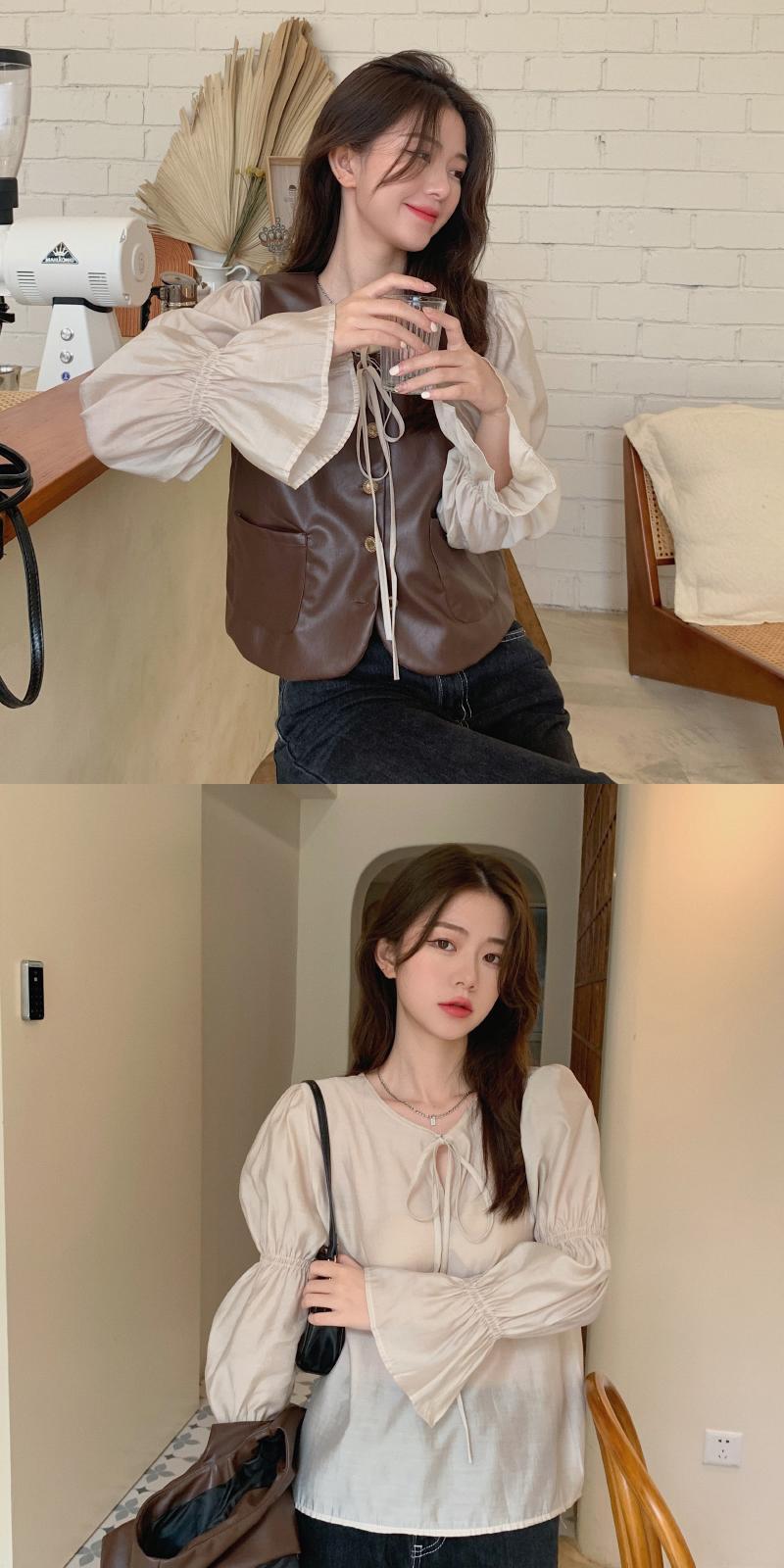 色:シャツ,革チョッキ