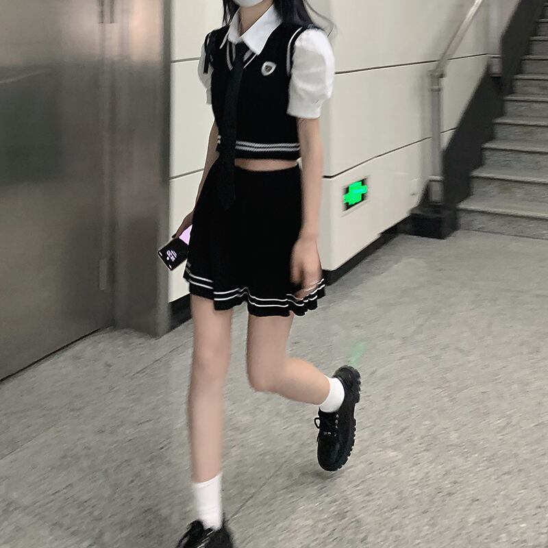 色:白いベスト,黒のベスト,白いプリーツスカート,ブラックプリーツスカート,ベースシャツ(黒ネクタイ付き)