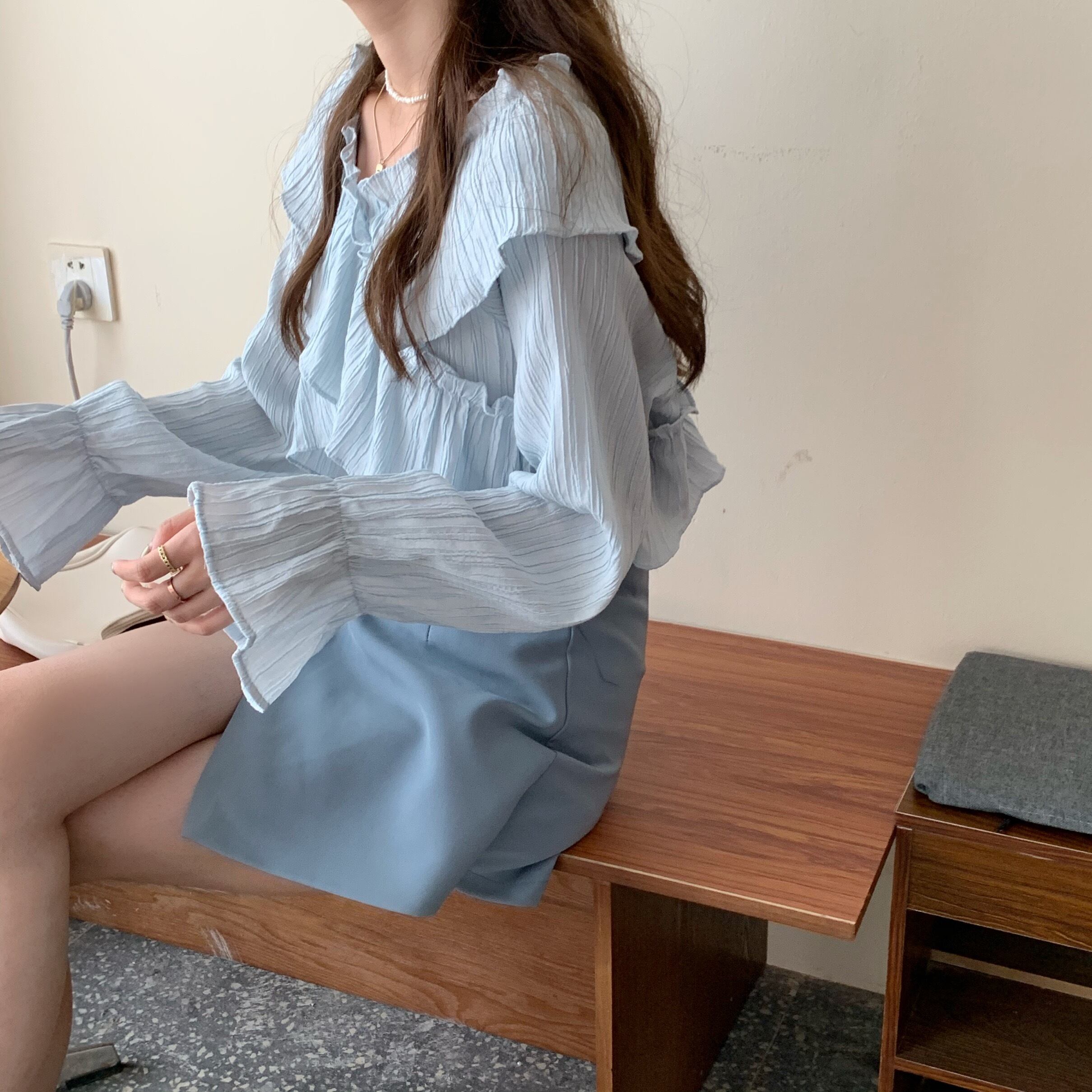 ブルーシフォンブラウス スプリング秋物シャツ スタイル韓国ファッション 大人ガーリー スウィート キュート カジュアル 春物 オータム DOLL74166152242 | pleglad Dorothy