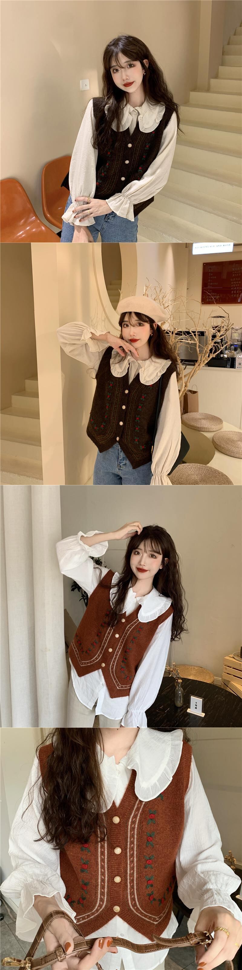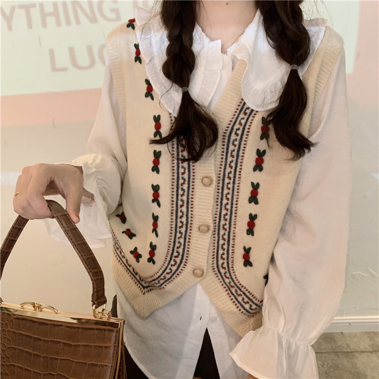 色:ベージュのベスト,ダークレッドのベスト,ダークコーヒーベスト,白のシャツ,アプリコットシャツ