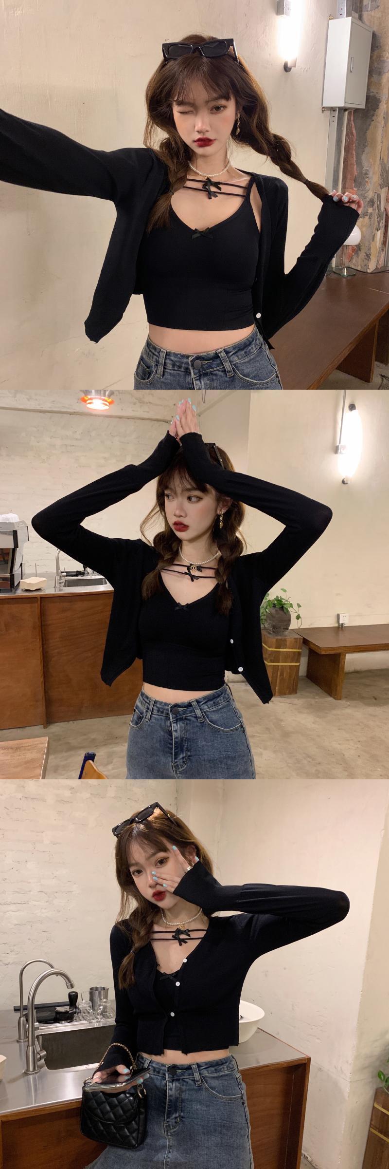 ニットセーター ジャケット レディーススプリング秋物韓国ファッション薄手ブラックカーディガンショートトップス 春物 オータム スタイル DOLL8341137052 | pleglad Dorothy