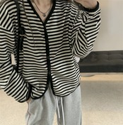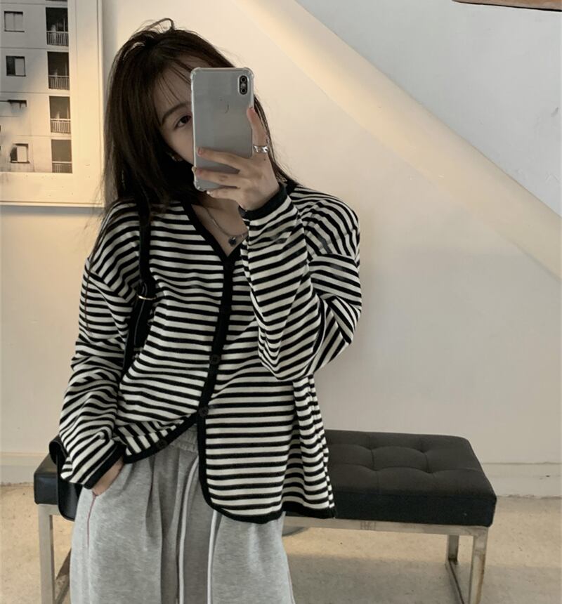 ストライプカーディガンジャケット レディーススプリング秋物韓国ファッションルーズトップス NEW ロング 春物 オータム スタイル 長袖 DOLL89788070588 | pleglad Dorothy