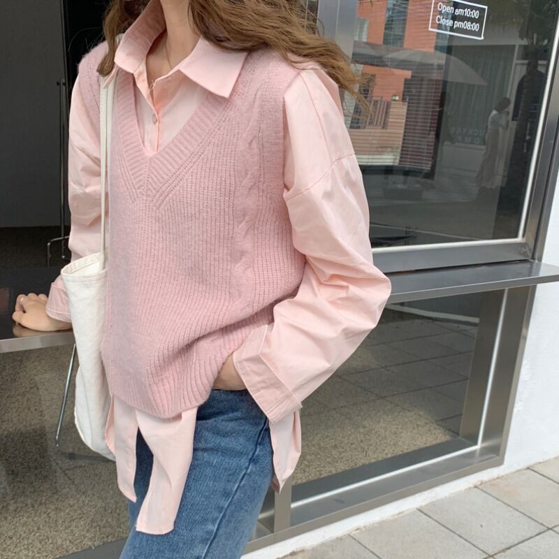 色:ピンクのベスト,白いベスト,ピンクのシャツ,ライトブルーのシャツ