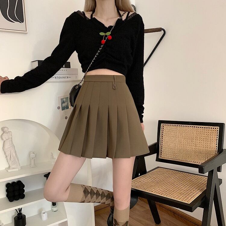 スタイルハイウェストウェストプリーツショートスカート レディーススプリング秋物ウィンターAラインカーキ 春物 オータム 冬物 ウエスト DOLL85233192374 | pleglad Dorothy
