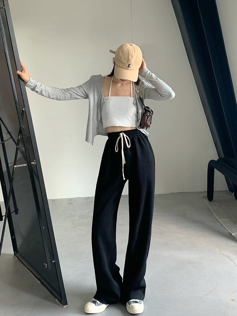 色:アプリコットハンギングドローストリングパンツ,黒のドローストリングパンツ,グレーのドローストリングパンツ
