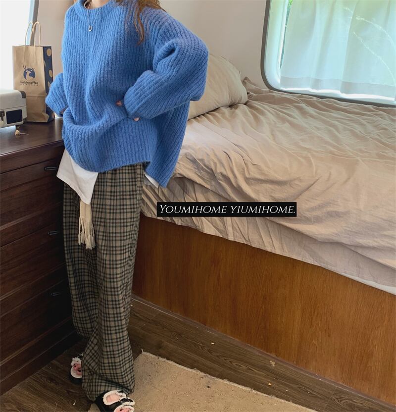 スタンダード格子柄パンツ 秋物ウィンターハイウェストウェストギャザーワイドレッグルーズカジュアル レトロ オータム 冬物 ワイドパンツ ウエスト DOLL2261993516 | pleglad Dorothy