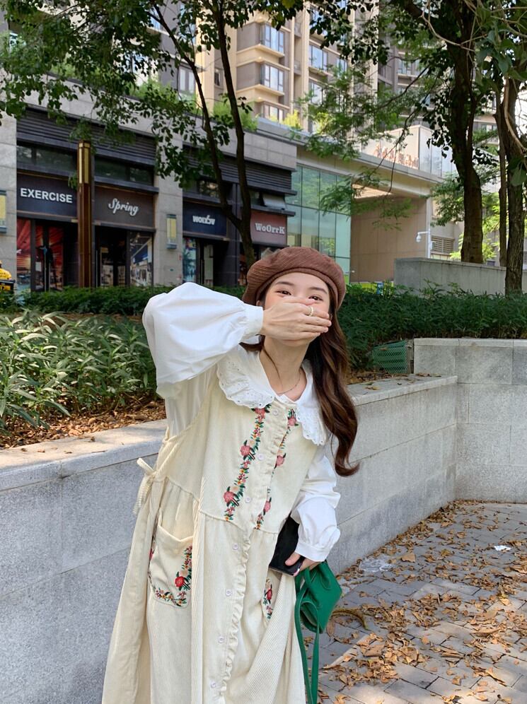 色:ドールカラーシャツ,アプリコットスタンドカラーシャツ,コーヒーカラーストラップドレス,アプリコットストラップドレス